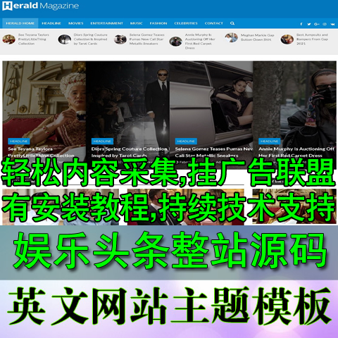 英文联盟整站模板 influencer社交欧美娱乐名人WordPresss新闻网站 图片网站