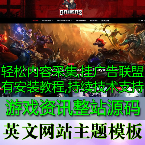 英文lead联盟整站模板 外文网站模板 lead暗黑游戏主题WordPress整站 带采集程序自动发布