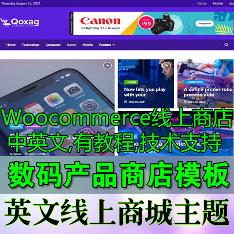 中英文商店整站模板 外贸跨境电商独立站 数码电器PHP整站模板源码 有技术支持 可选商品采集服务