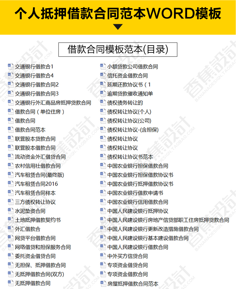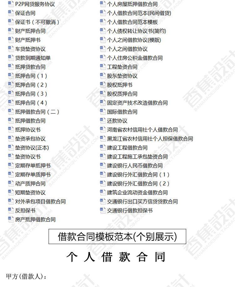 个人借款合同范本物品质押范文模板网贷房屋汽车抵押借款协议资料 99份范本文档素材下载