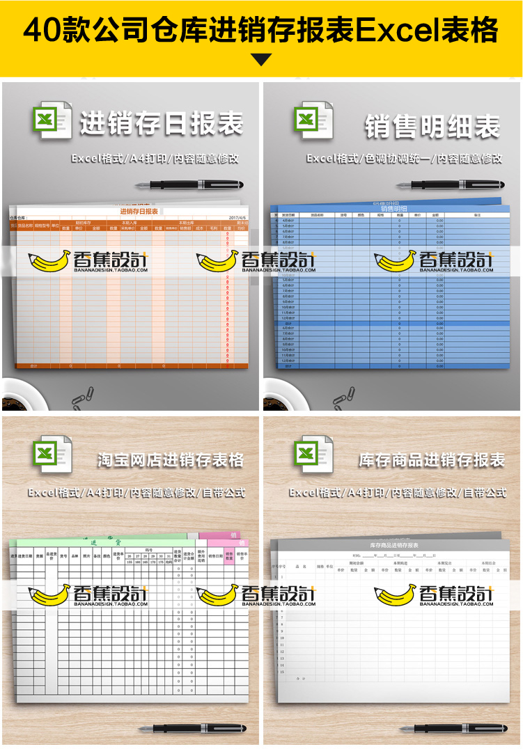公司企业仓库进销存Excel报表格函数采购出库入库单管理系统模板 40份Excel文档素材下载
