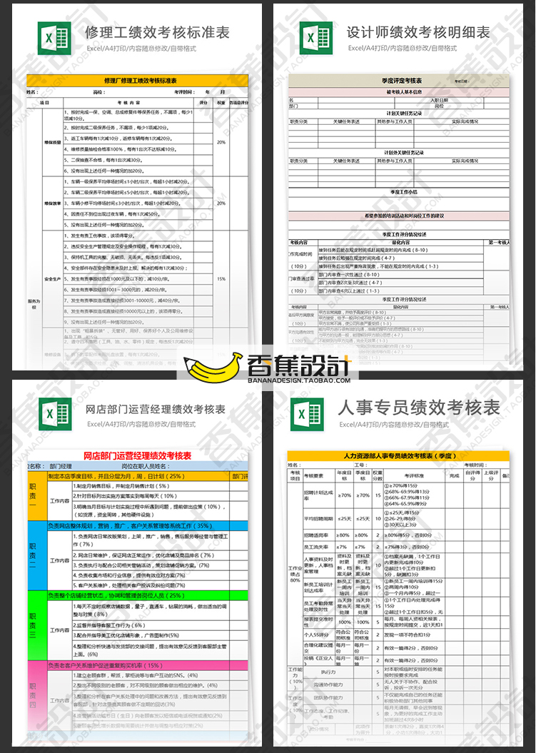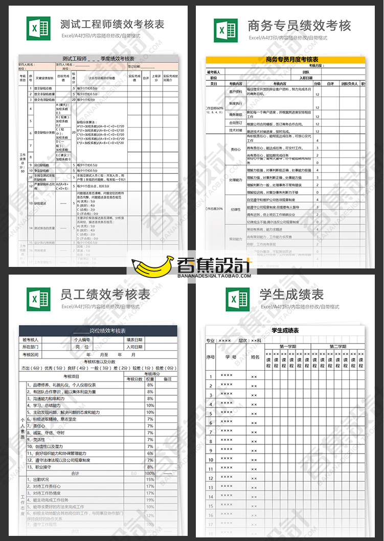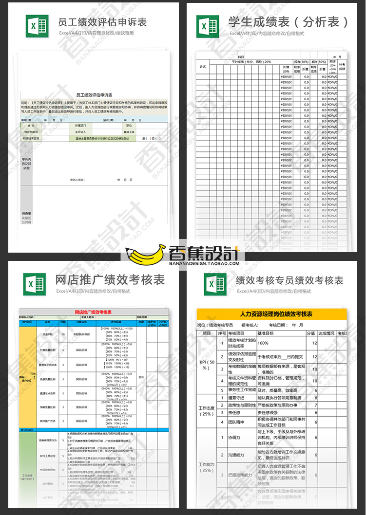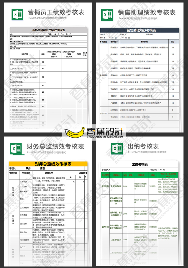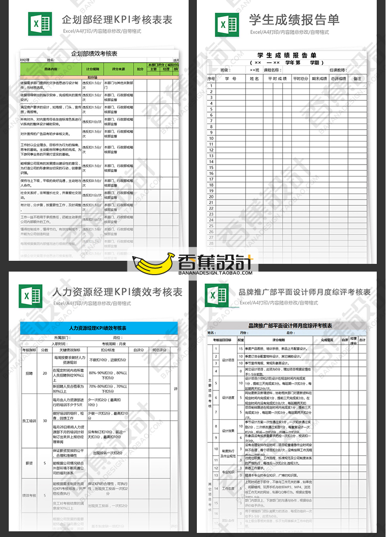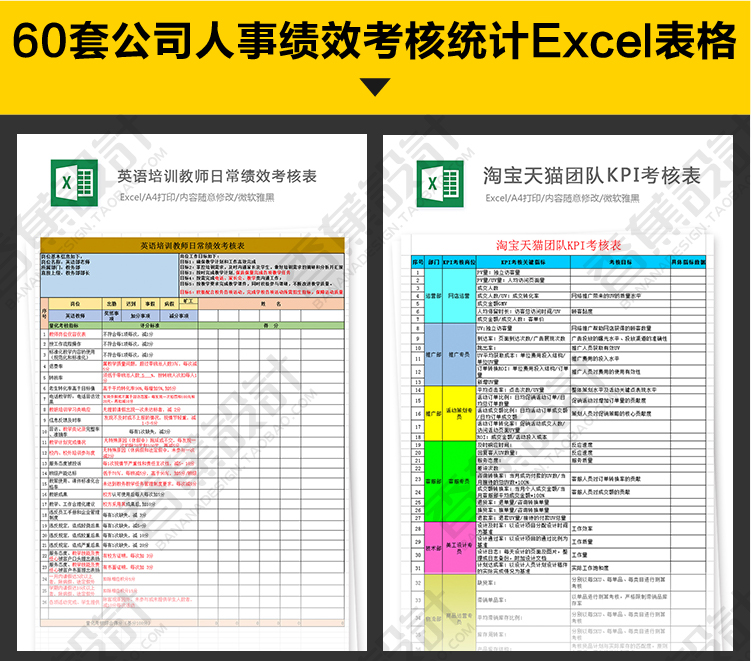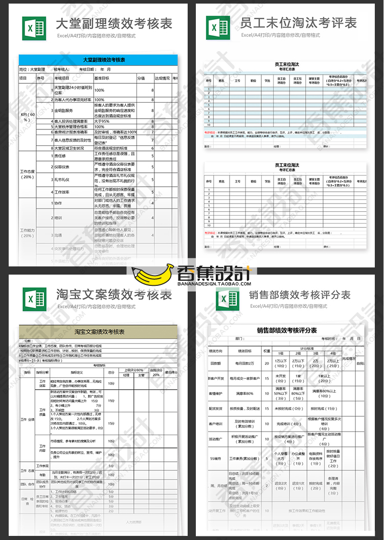 公司企业绩效考核评估表格统计人事人力资源工作效率Excel模板 60份Excel文档素材下载