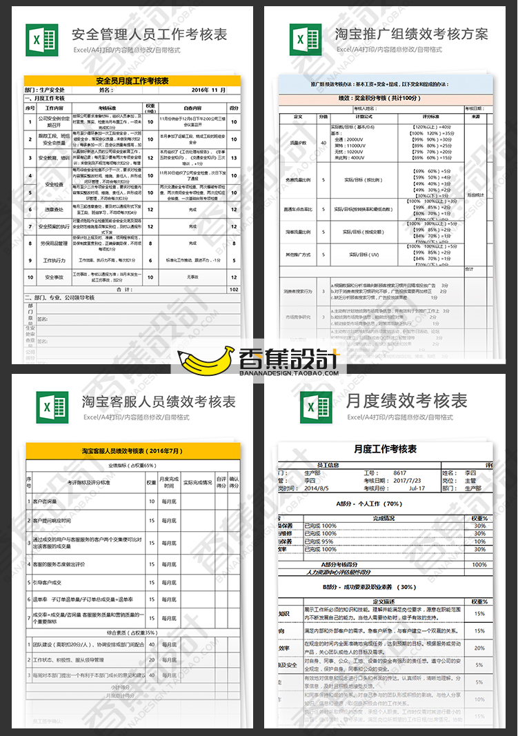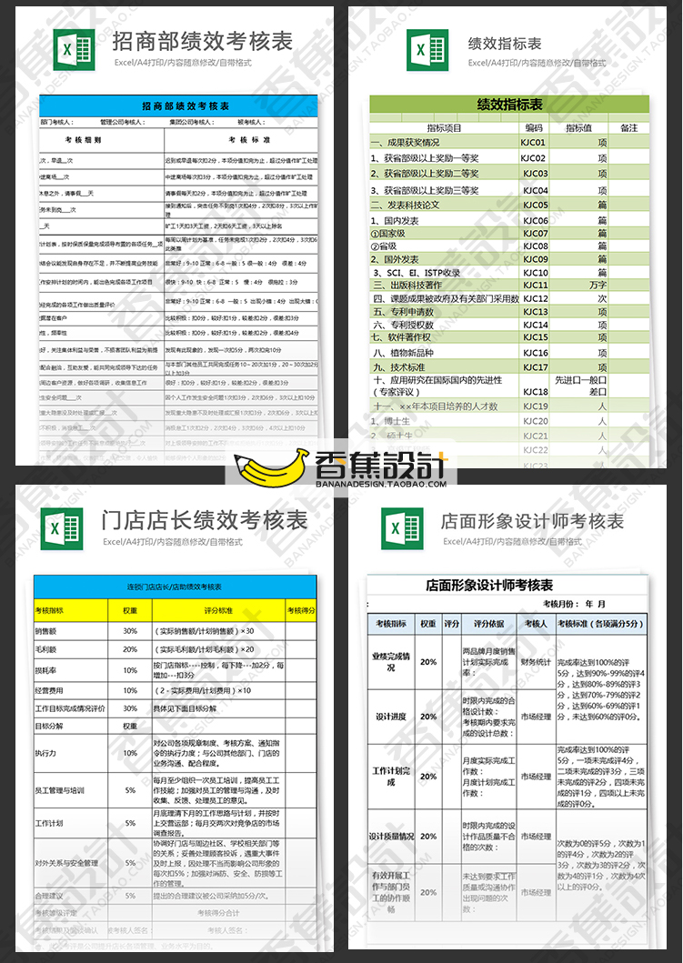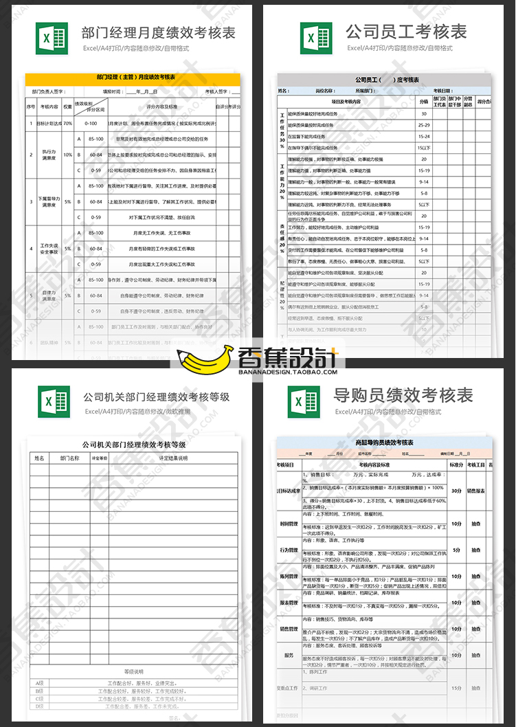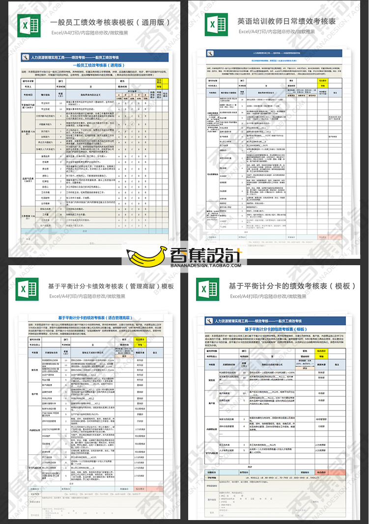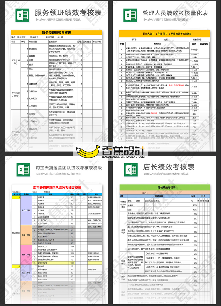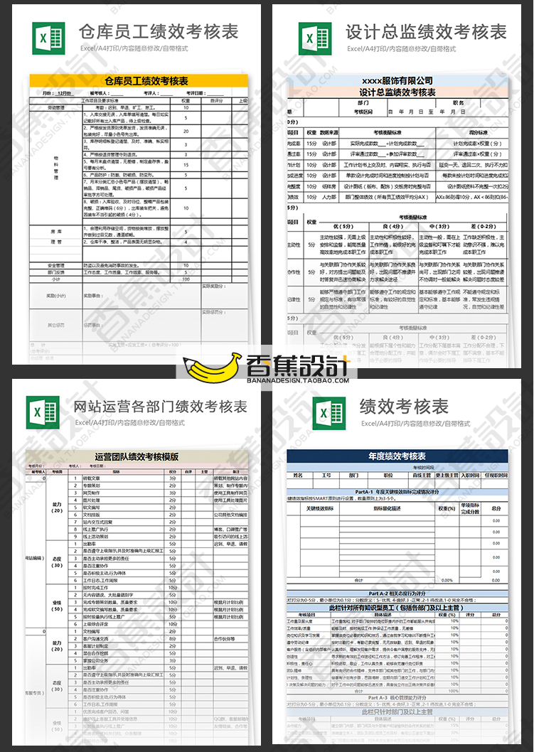 公司企业绩效考核评估表格统计人事人力资源工作效率Excel模板 60份Excel文档素材下载