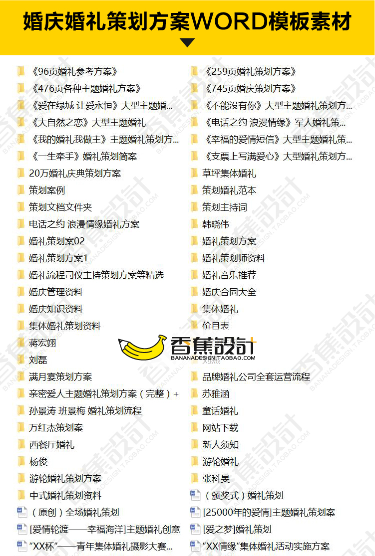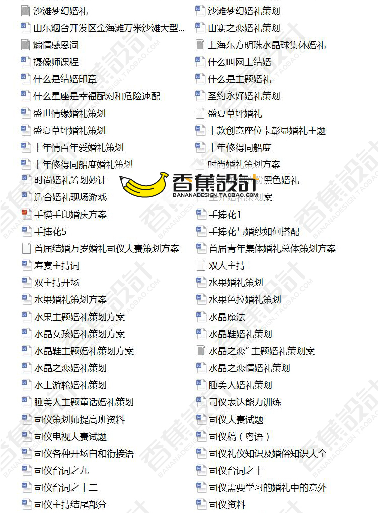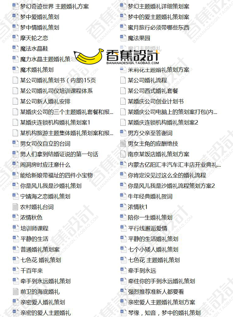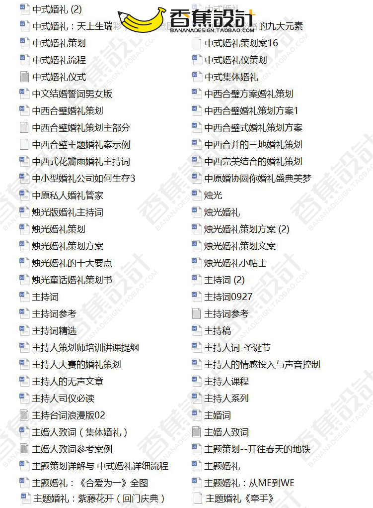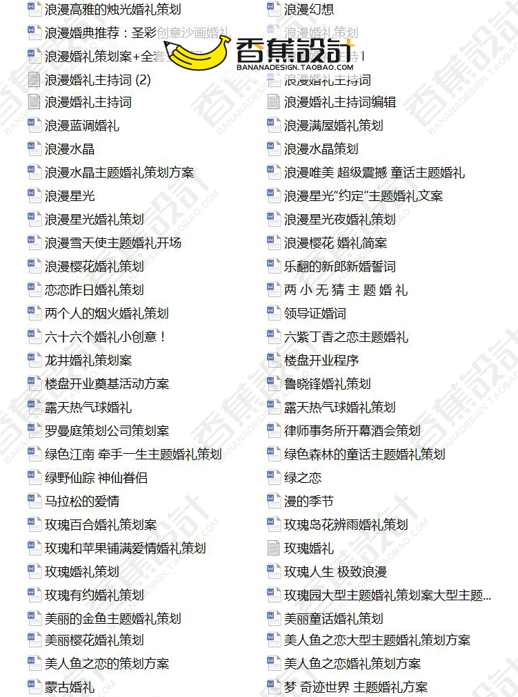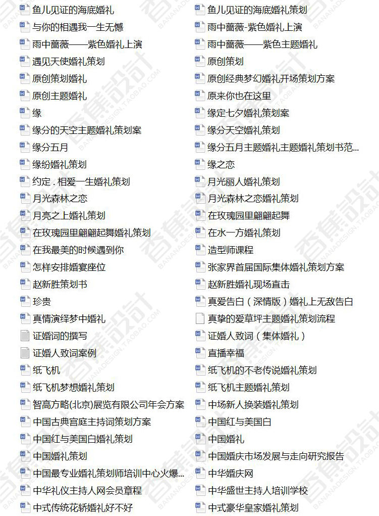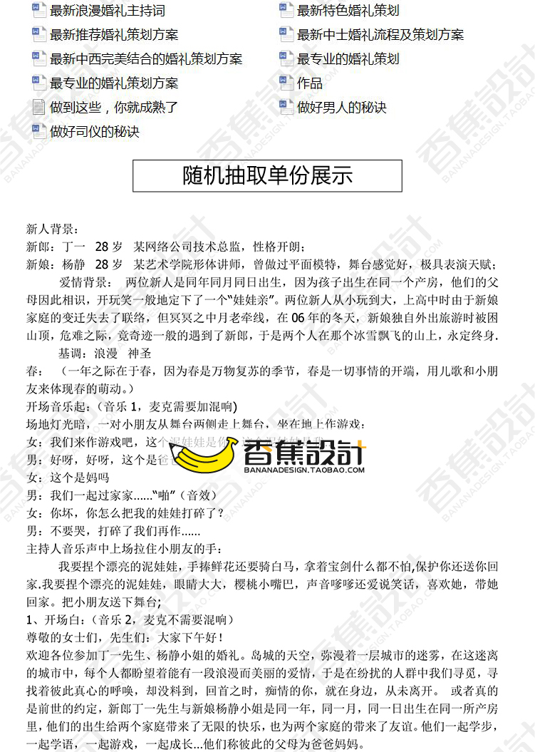 婚庆策划婚礼方案酒店主题设计主持人司仪台词讲稿word资料素材库 2300份word文档素材下载