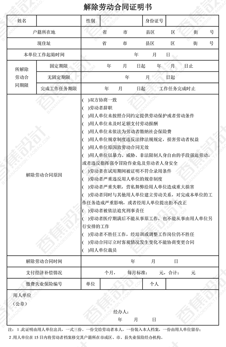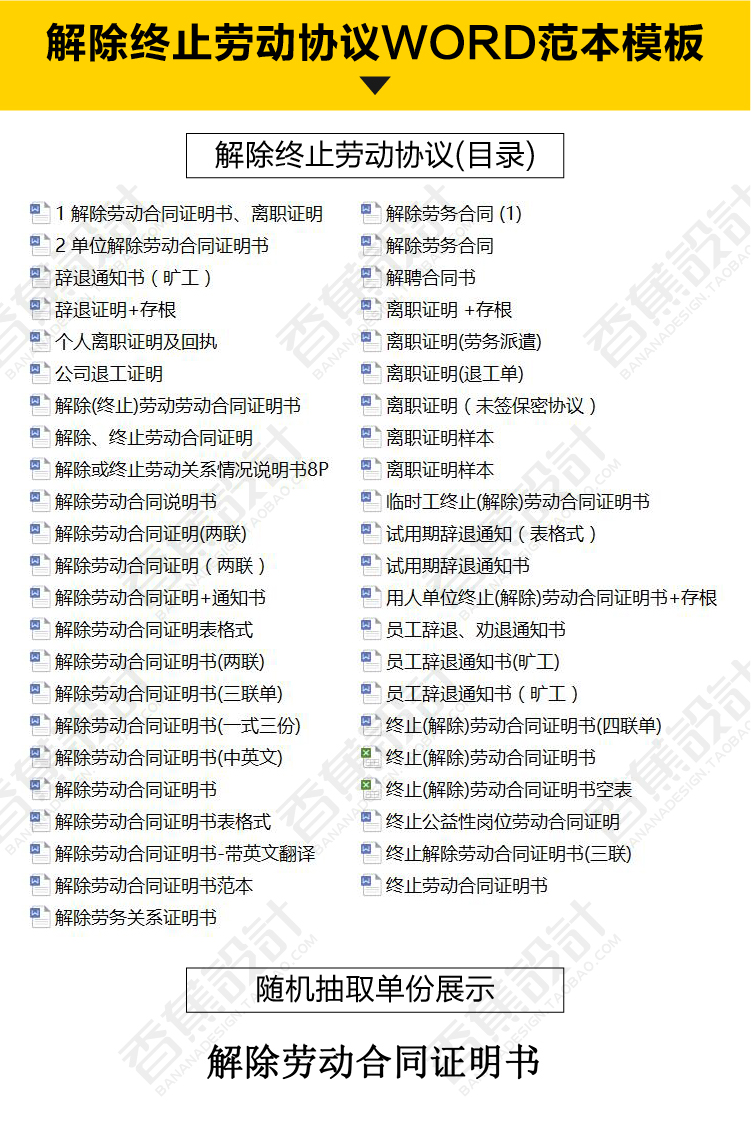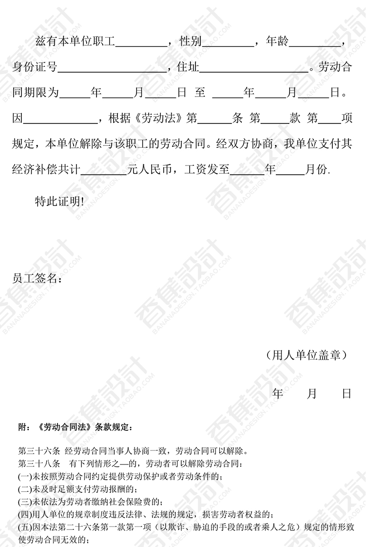 解除劳动合同通知书范本终止劳务协议公司员工辞退证明WORD模板 50份WORD文档素材下载