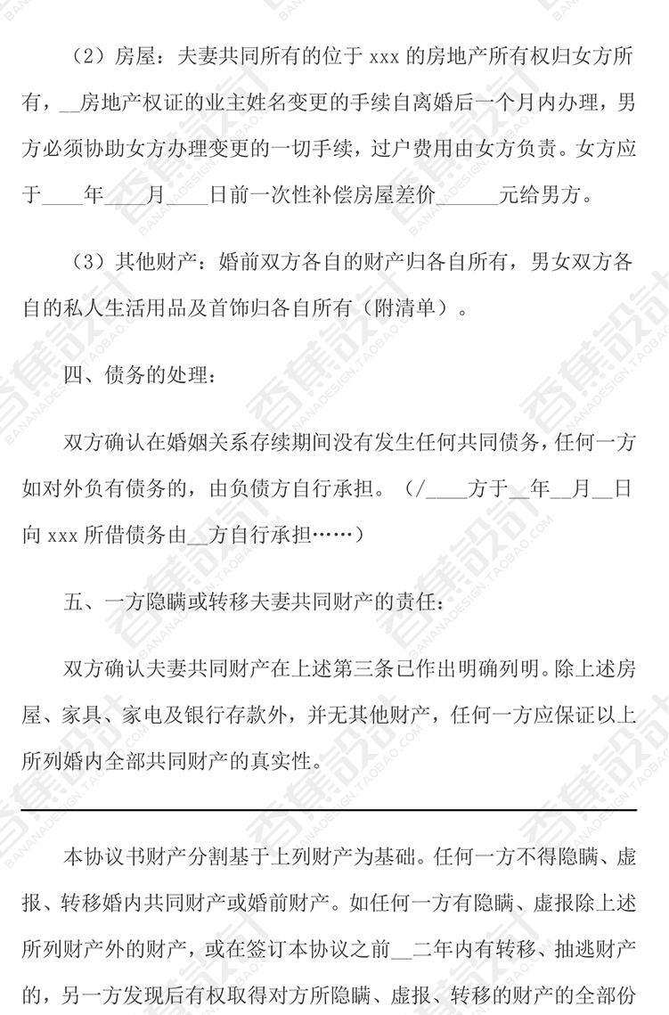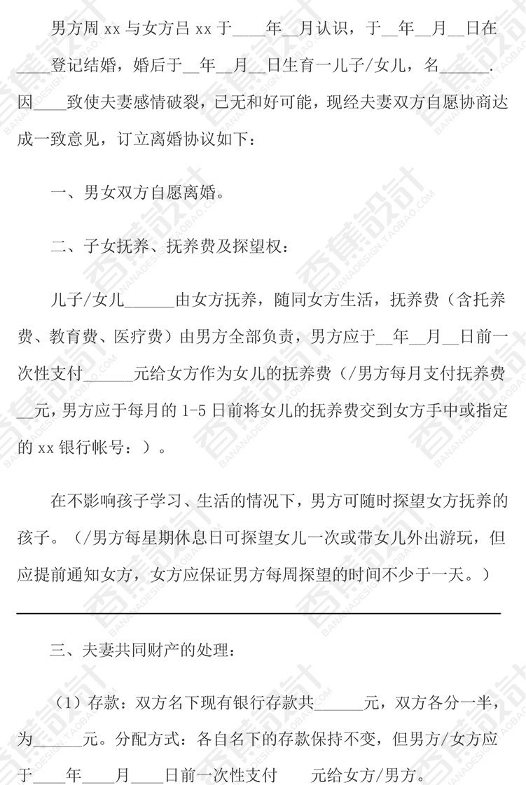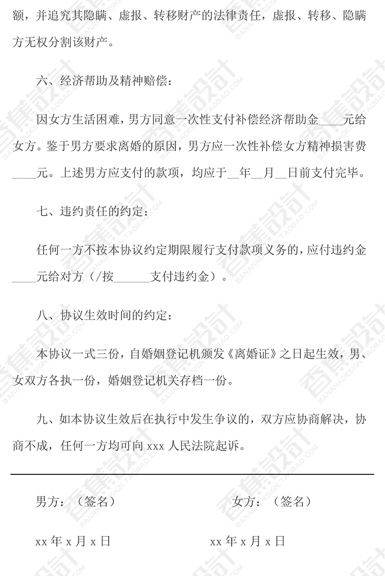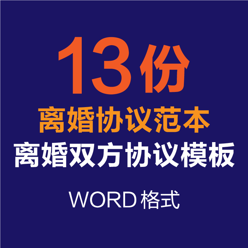 离婚协议书夫妻财产分割子女抚养净身出户经济补偿模板范文本WORD 13份WORD文档素材下载