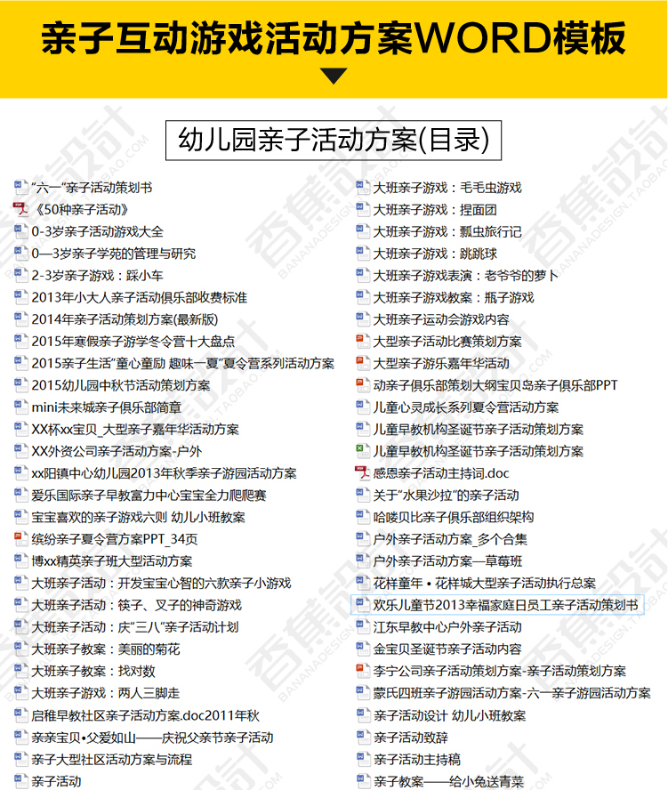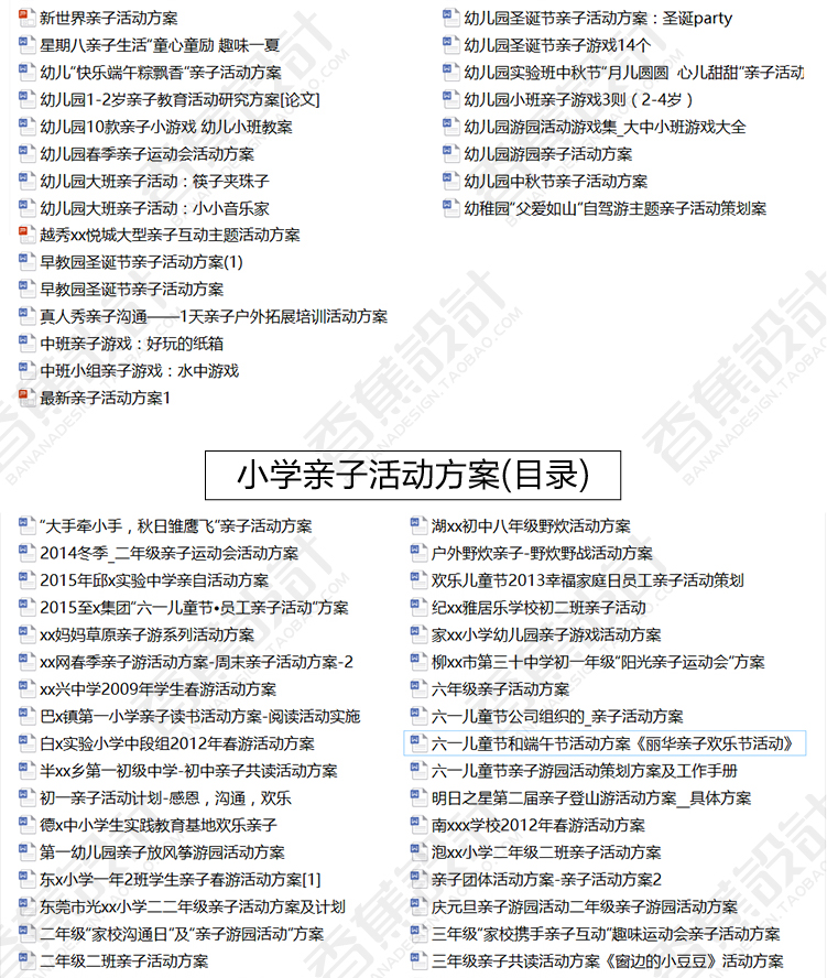 亲子互动游戏活动策划方案范本幼儿园早教小学生户外儿童教育方案 234份WORD文档素材下载