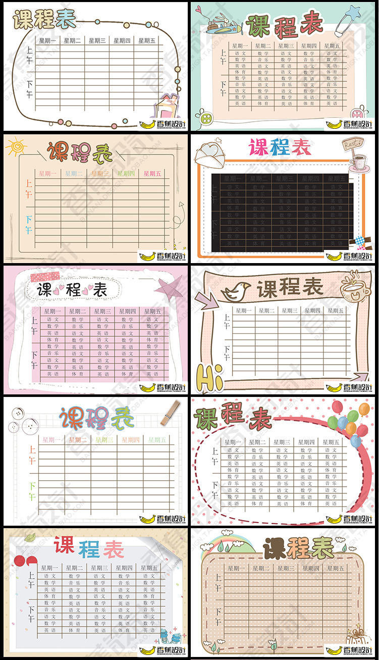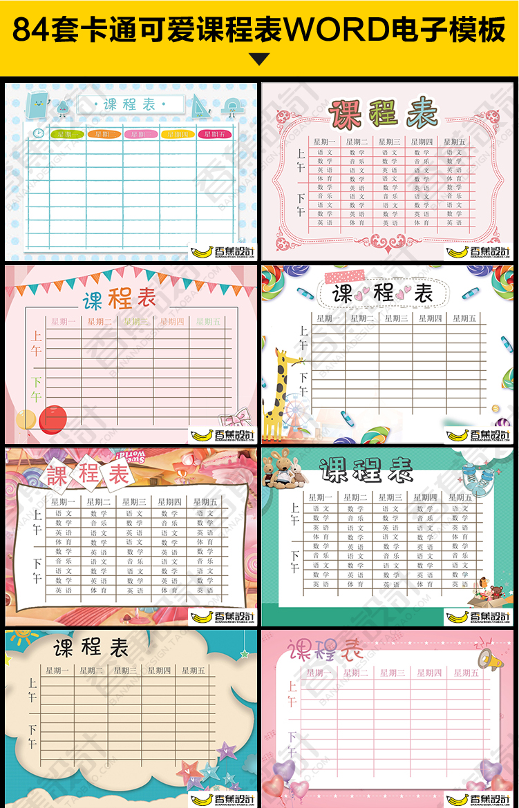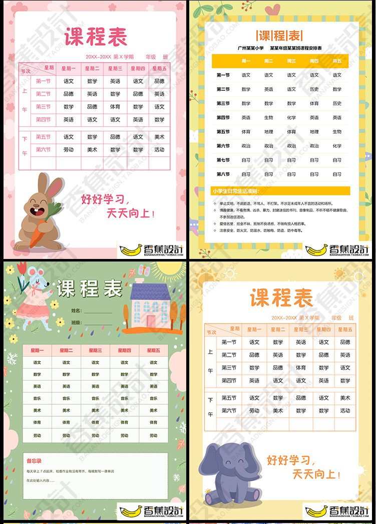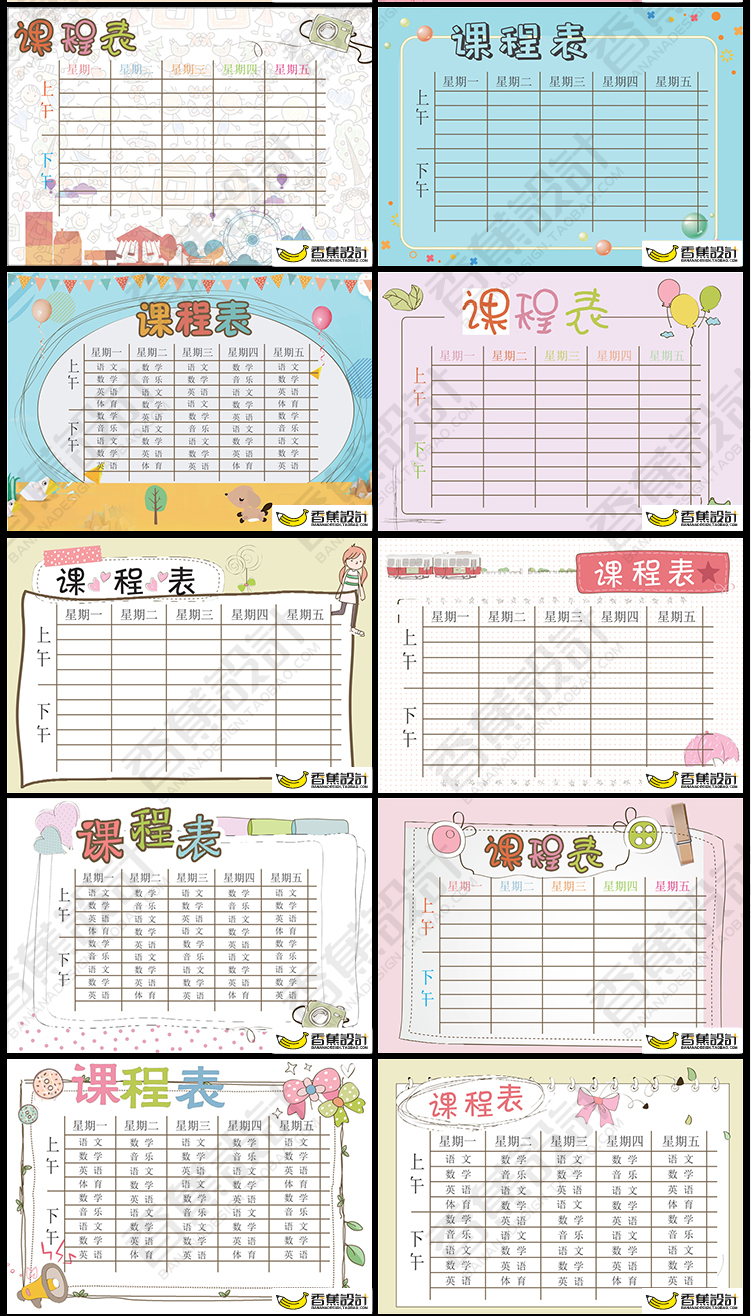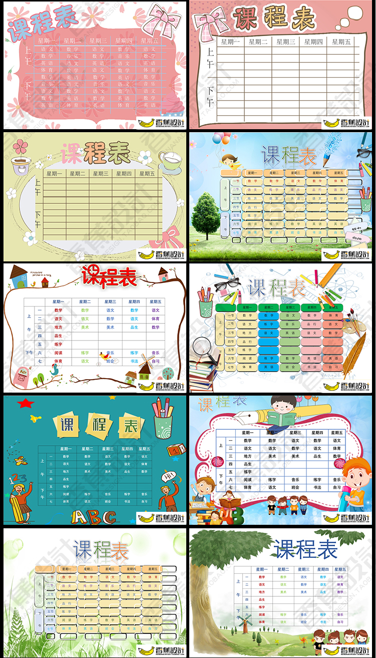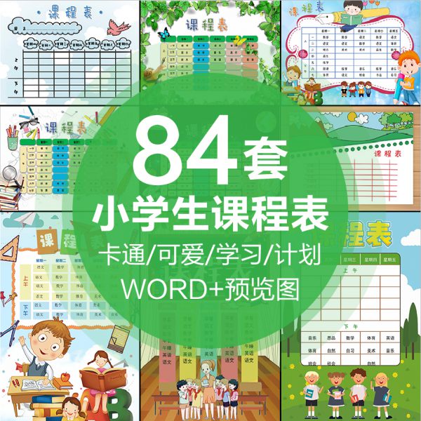 卡通可爱中小学生课程学习表word格式模板设计学习计划表印刷素材 84份Word文档素材下载