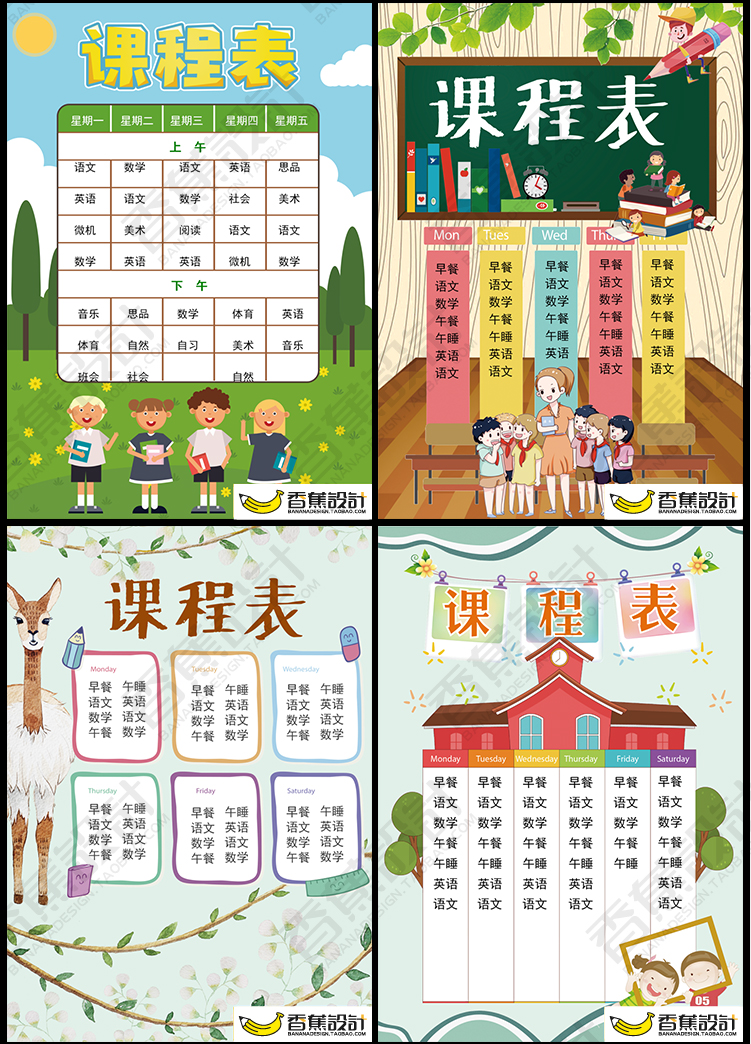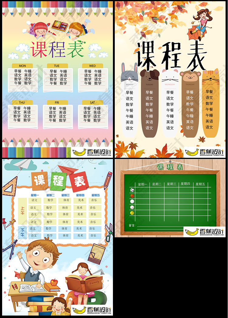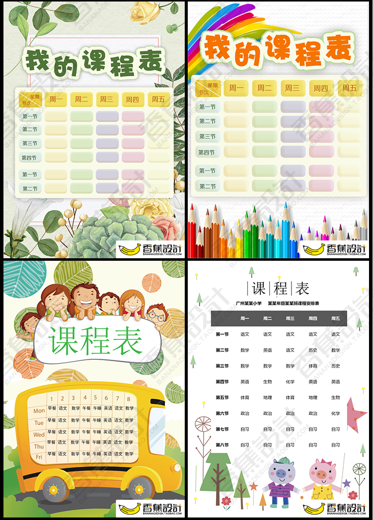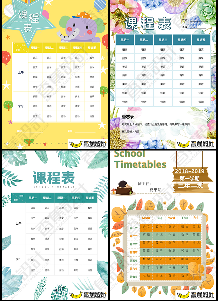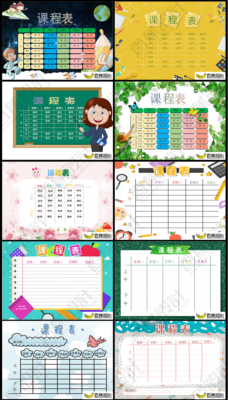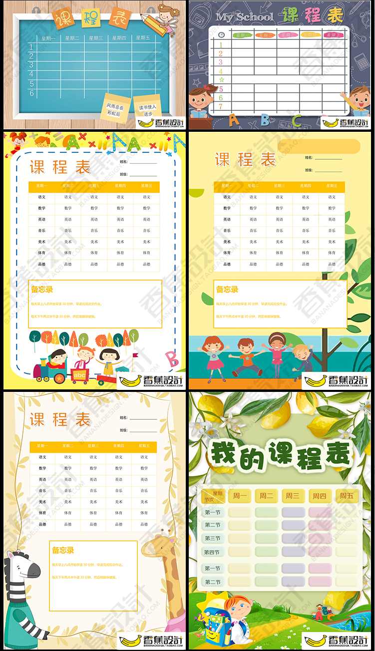卡通可爱中小学生课程学习表word格式模板设计学习计划表印刷素材 84份Word文档素材下载