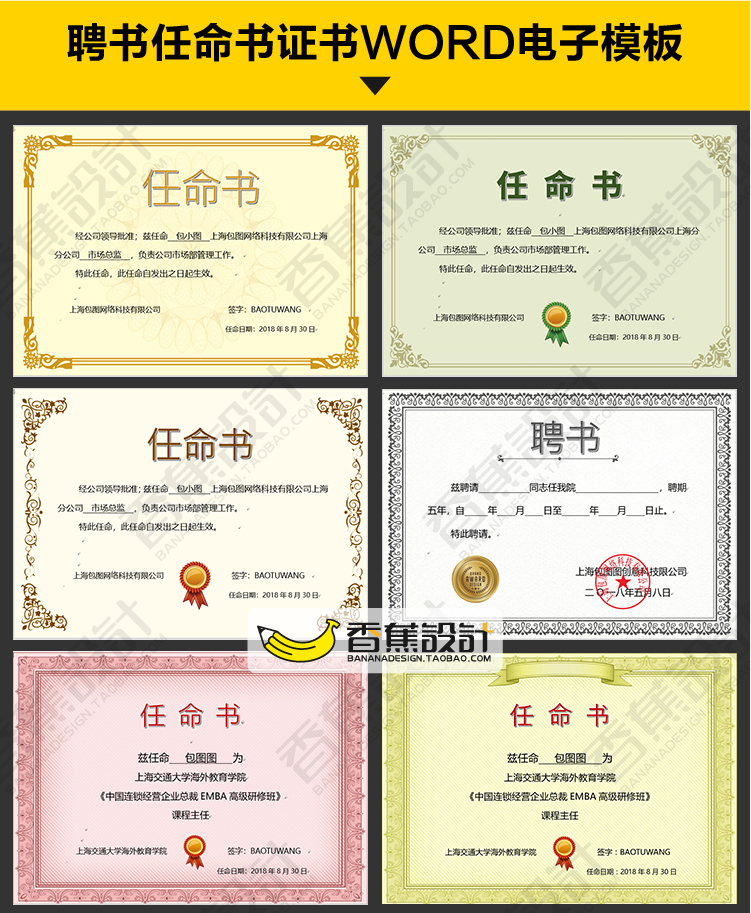 聘书模板任命书聘请任职聘任证书获奖word文档格式模板素材源文件 份Word文档素材下载