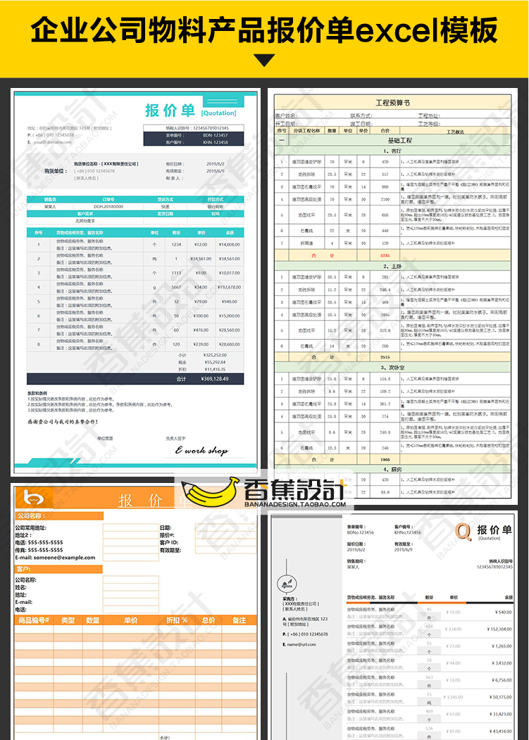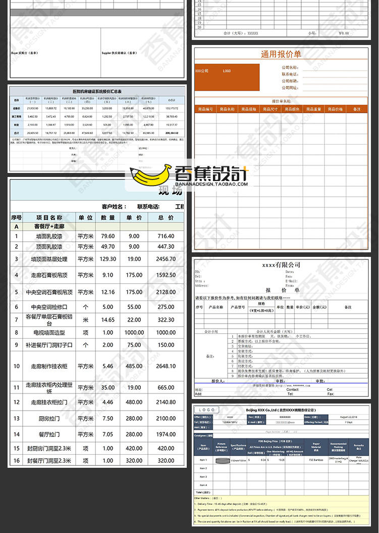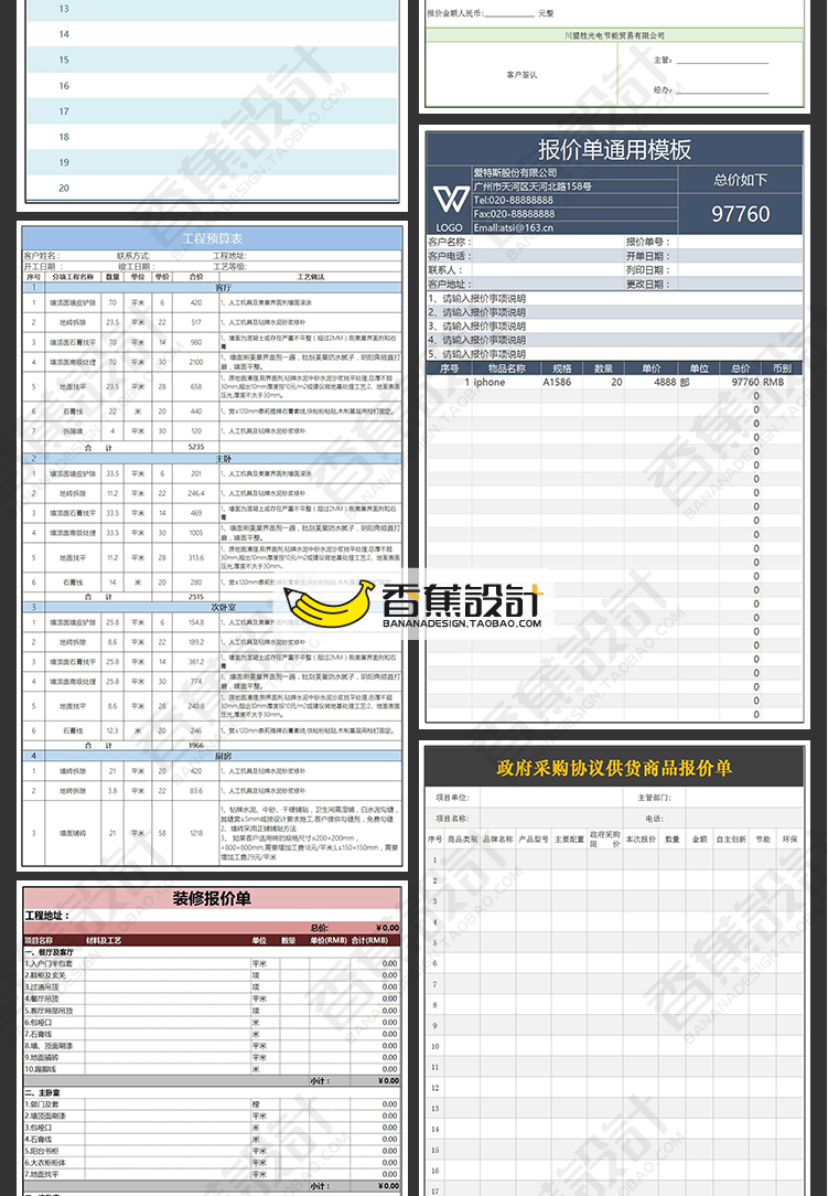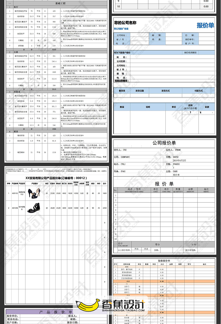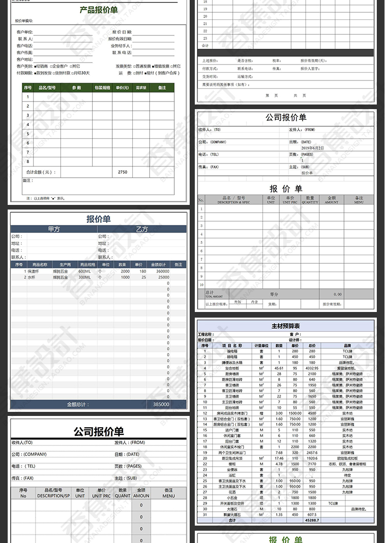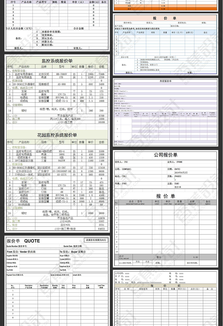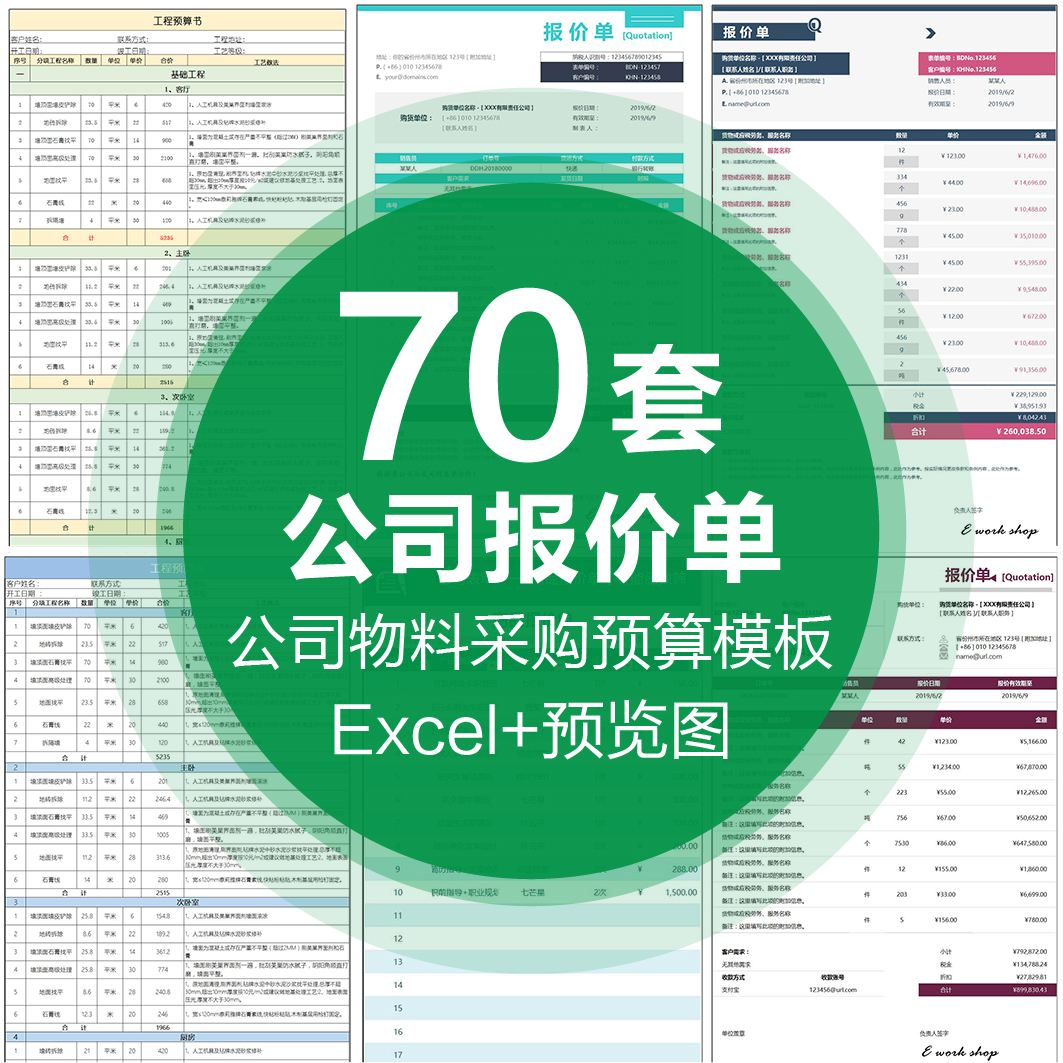 企业公司物料装修商品采购工程预算维修外贸商品报价单excel模板 70份excel文档素材下载