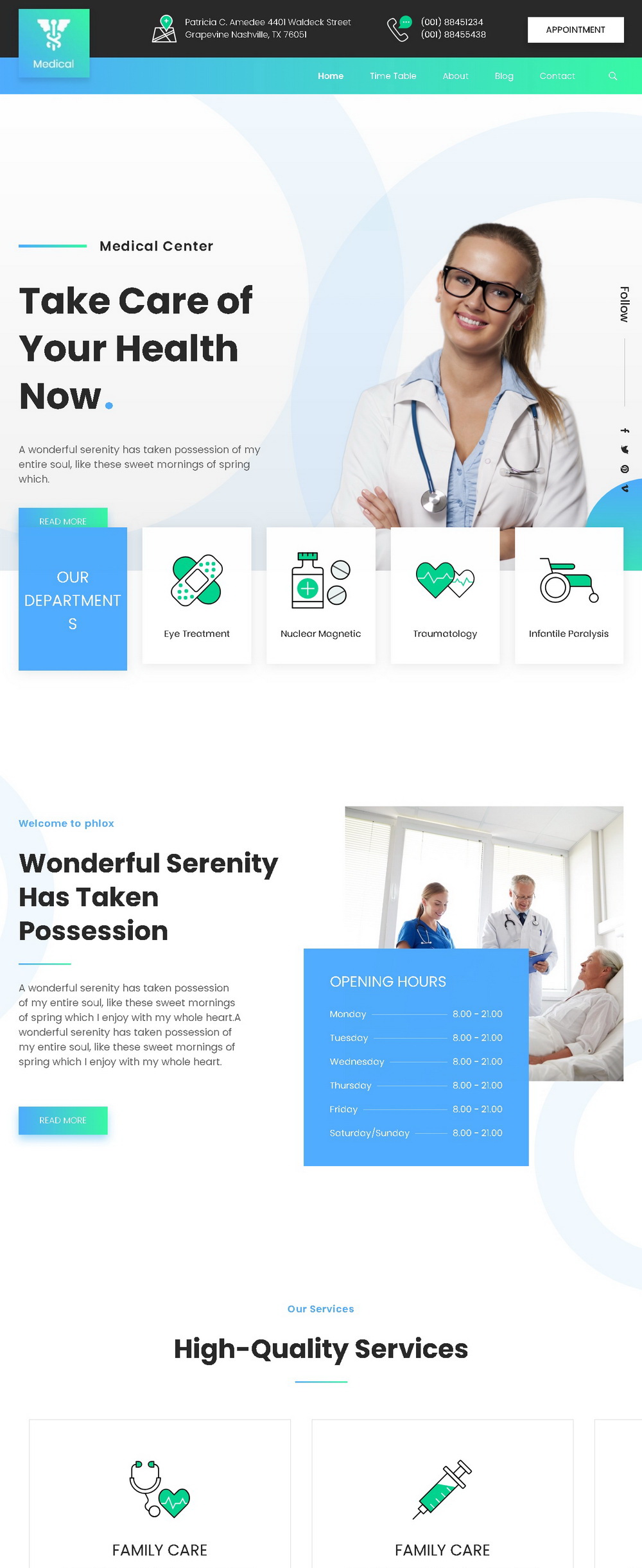 模板演示网址:https://demo.phlox.pro/medical