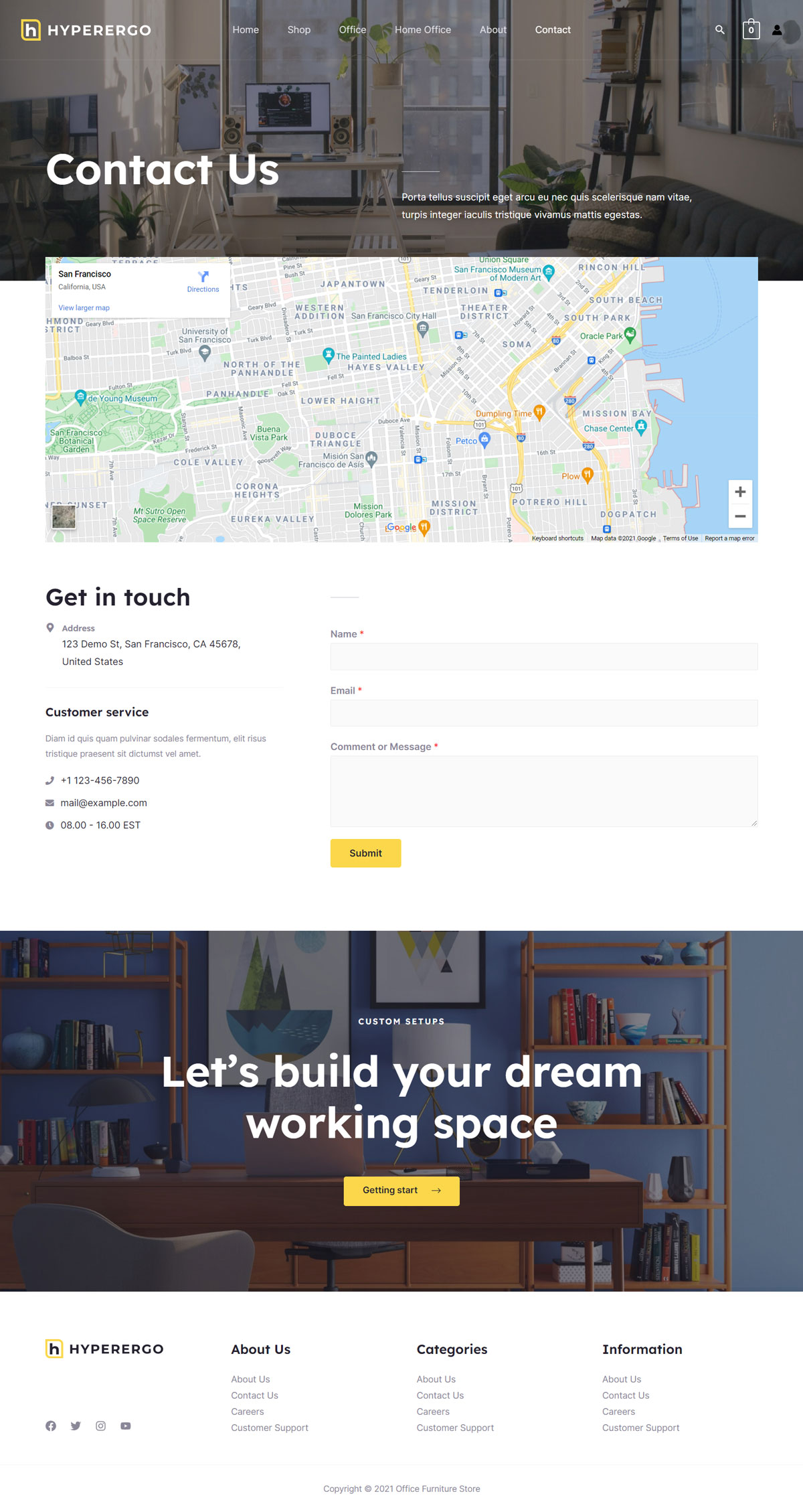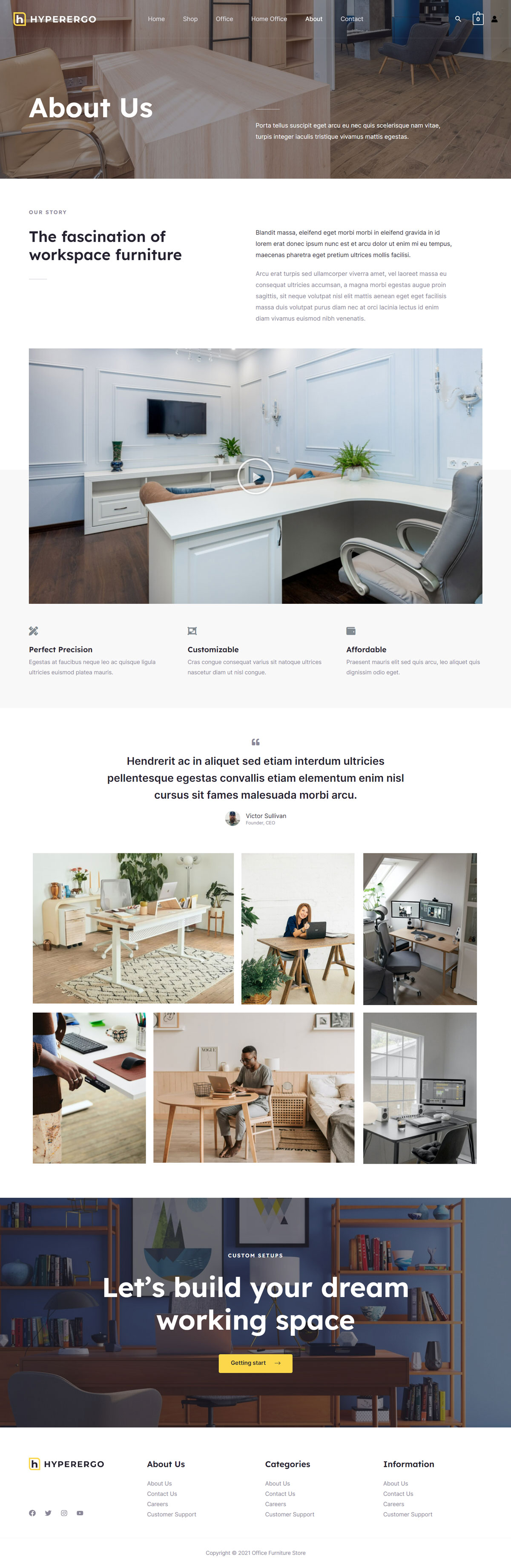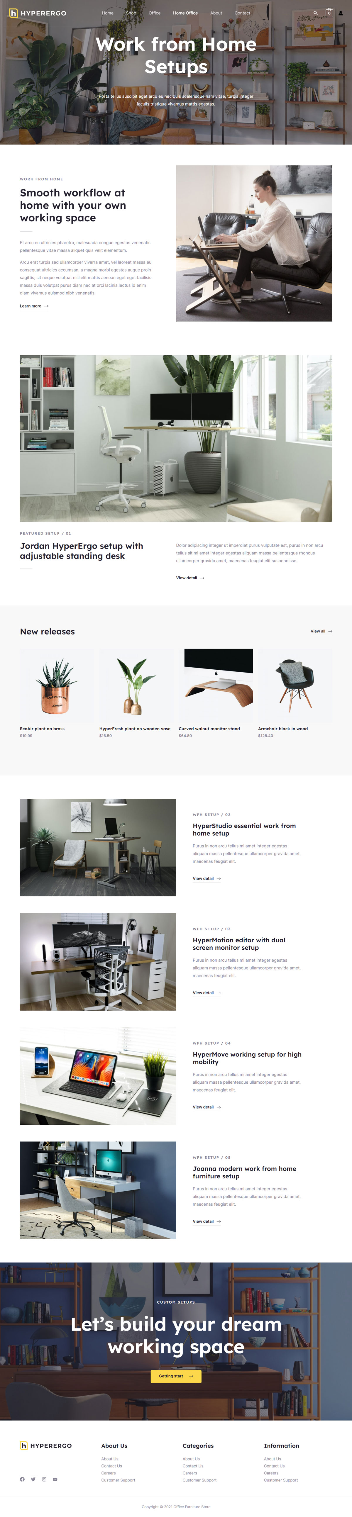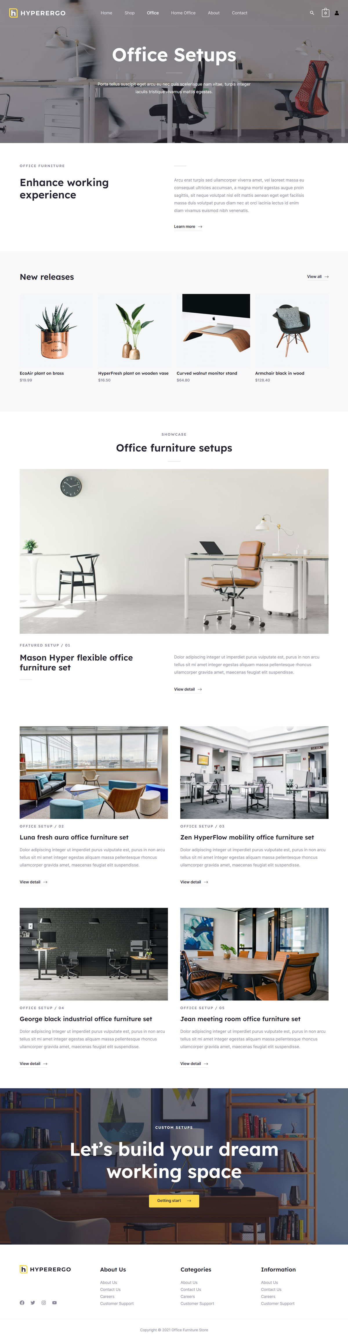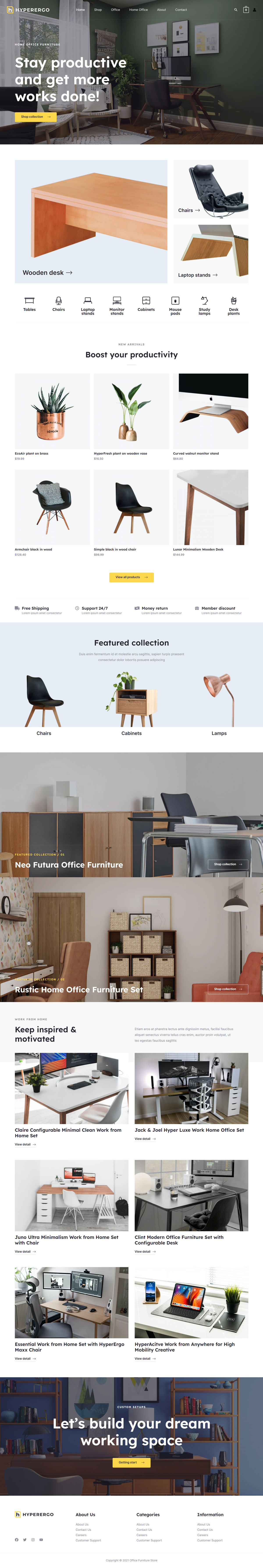 包括所有优质办公家具产品,如书桌、椅子、储物单元等。单个产品页面允许您接受客户评论并显示相关产品。