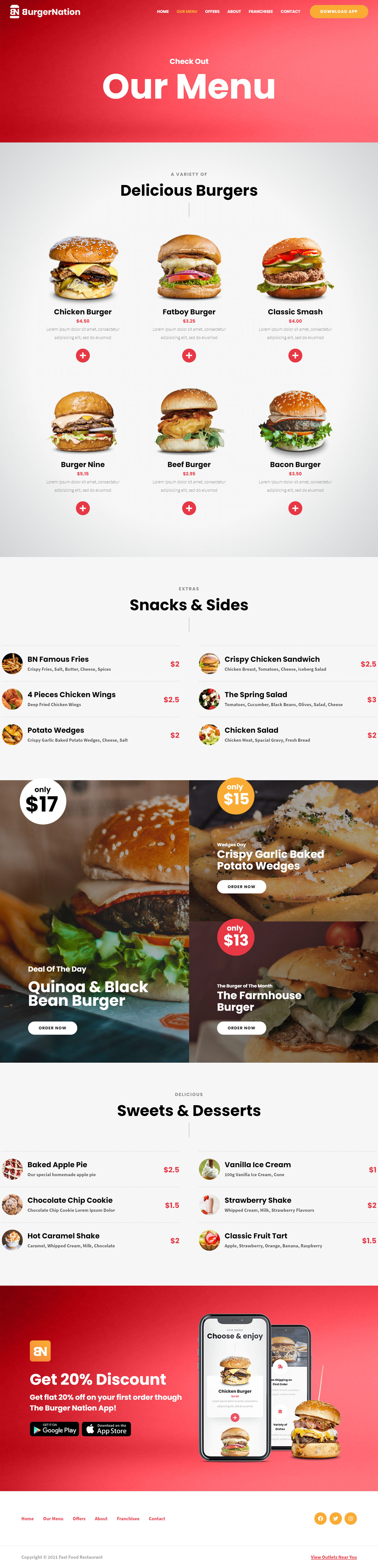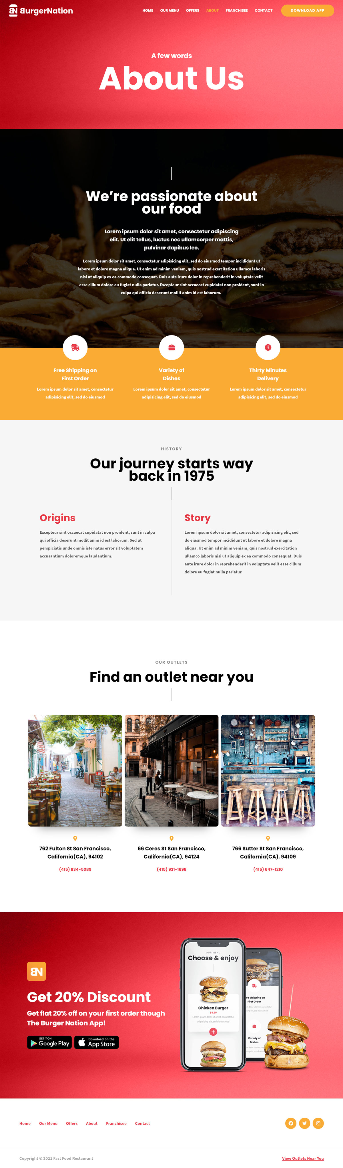 从在线订购系统、菜单、交易和优惠到客户评论、店铺详情等,该模板包括您需要向客户提供的一切,并构建一个优秀的快餐店网站。