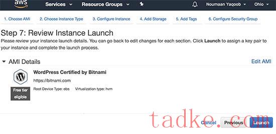 现在,您将看到EC2实例配置的概述。点击“启动”按钮启动您的实例。