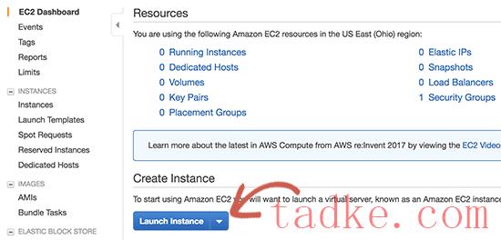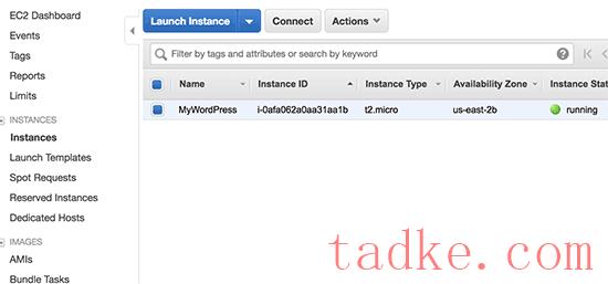 之后,点击“启动实例”按钮以存储您的设置并启动您的EC2实例。
