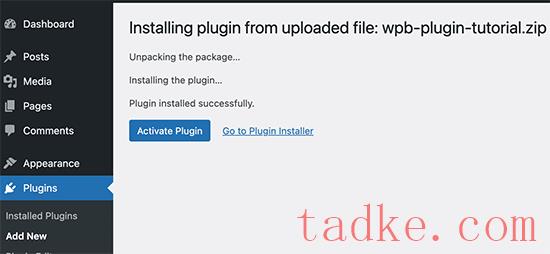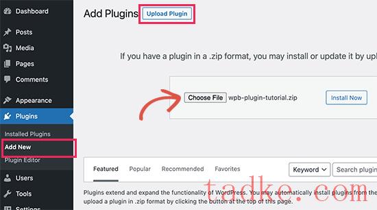 你需要点击顶部的‘上传插件’按钮来上传你的插件。这将向您显示插件上载框。