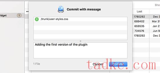 您的SVN应用程序现在将同步您的更改并将它们提交到您的插件存储库。
