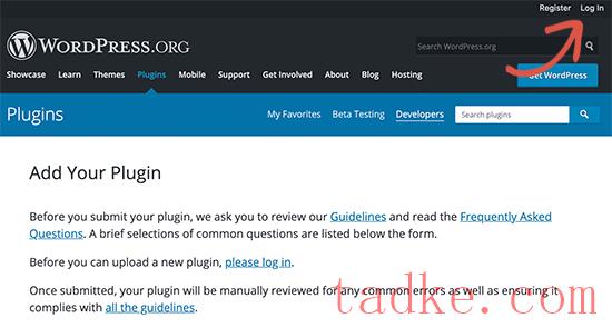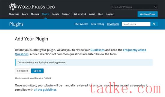 一旦登录,你就可以上传并提交你的插件以供审查。