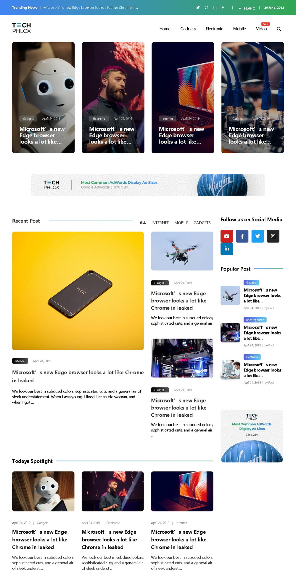 网站模板演示地址:https://demo.phlox.pro/tech-magazine