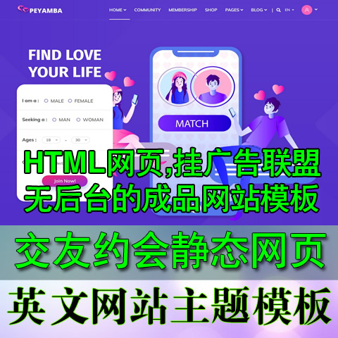 英文HTML5静态网页模板 交友约会社交网站 完整代码没后台成品网站 上传就成站模板