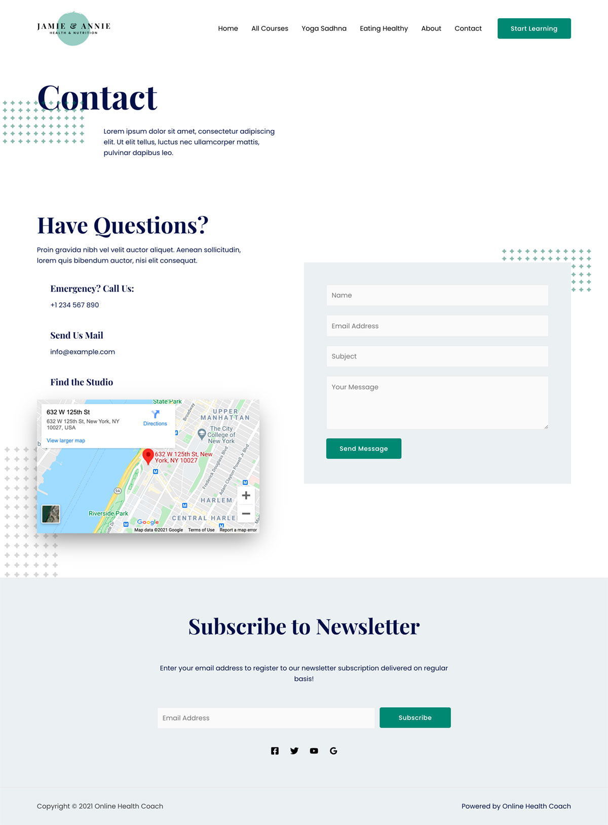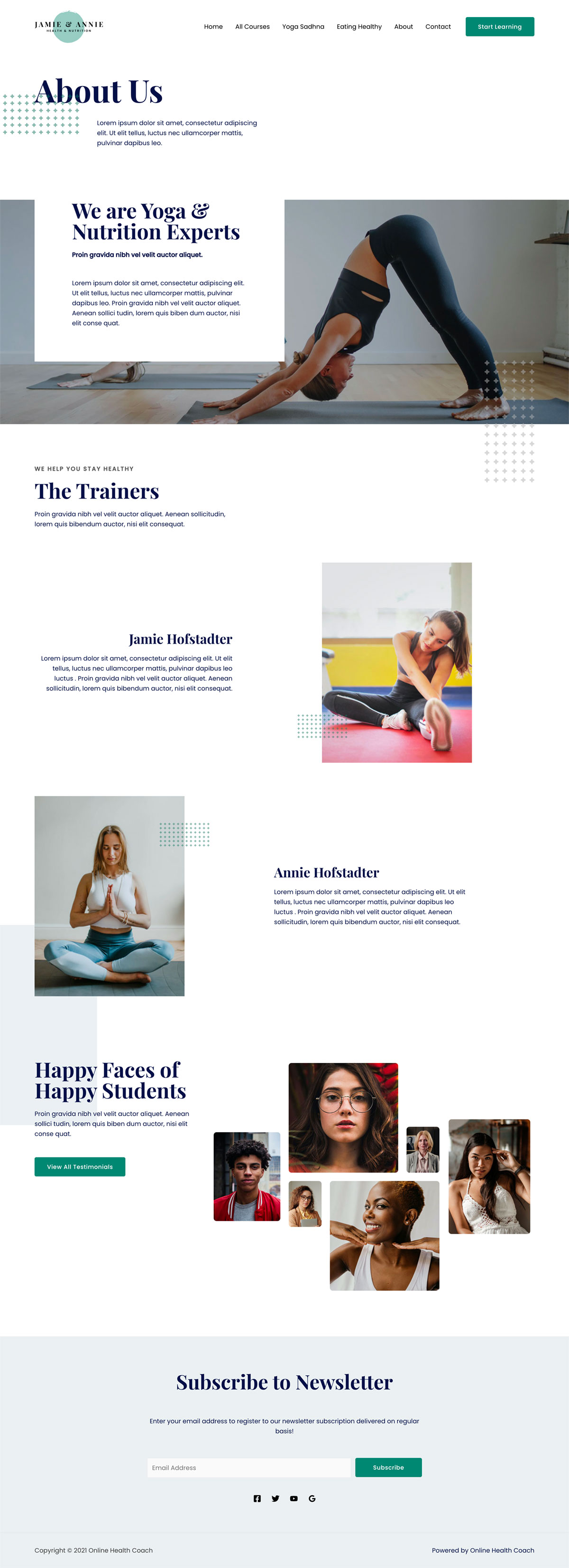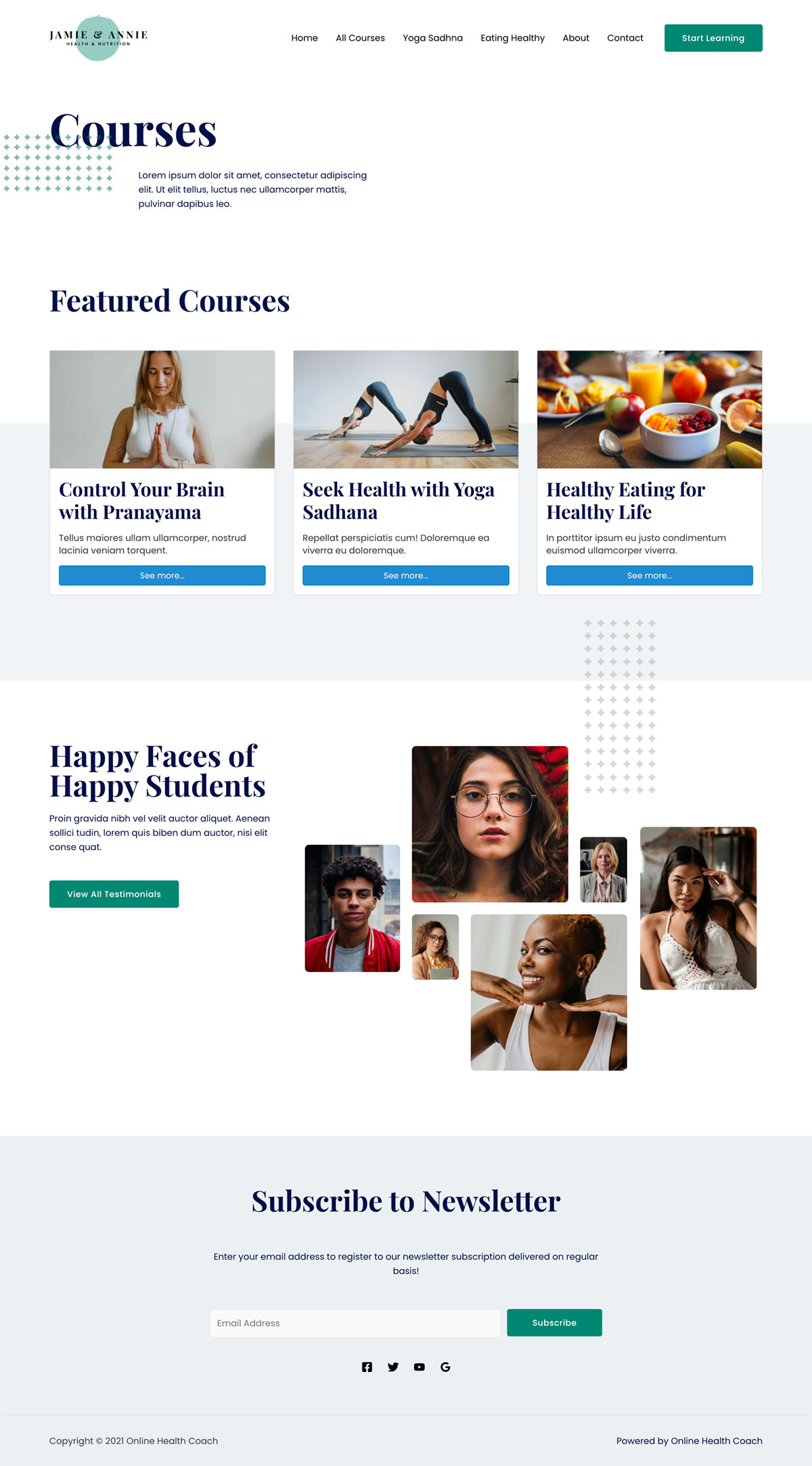 由于与WordPress LMS插件的无缝集成,您可以轻松创建和管理课程。该模板允许您包含教练的详细信息、学生的推荐,并通过时事通讯订阅表单建立电子邮件列表。