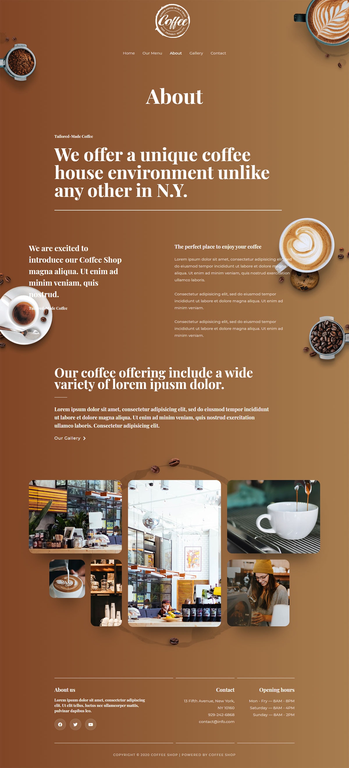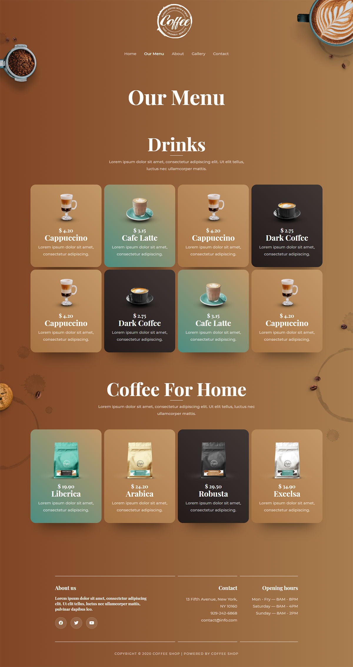 无论您是从头开始建立一个咖啡店网站,还是改造现有的网站,我们的咖啡店模板正是您所需要的。从颜色到布局,模板的每一个元素都将重新创造体验。