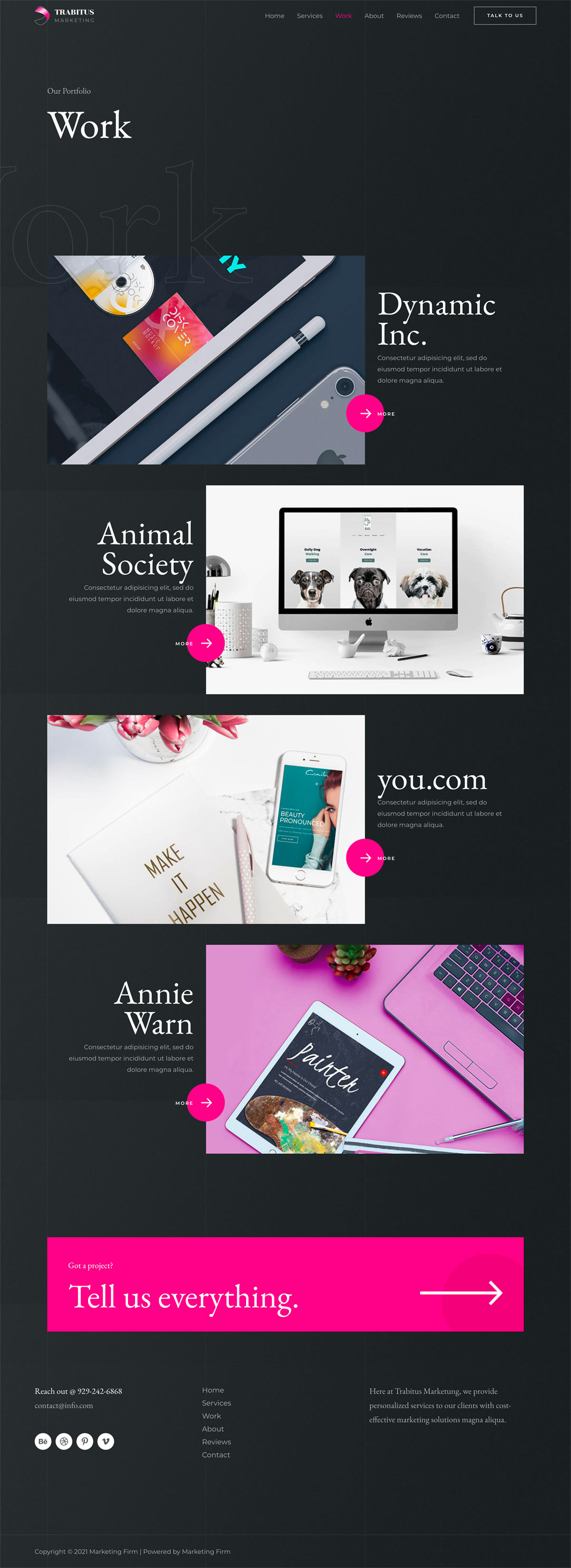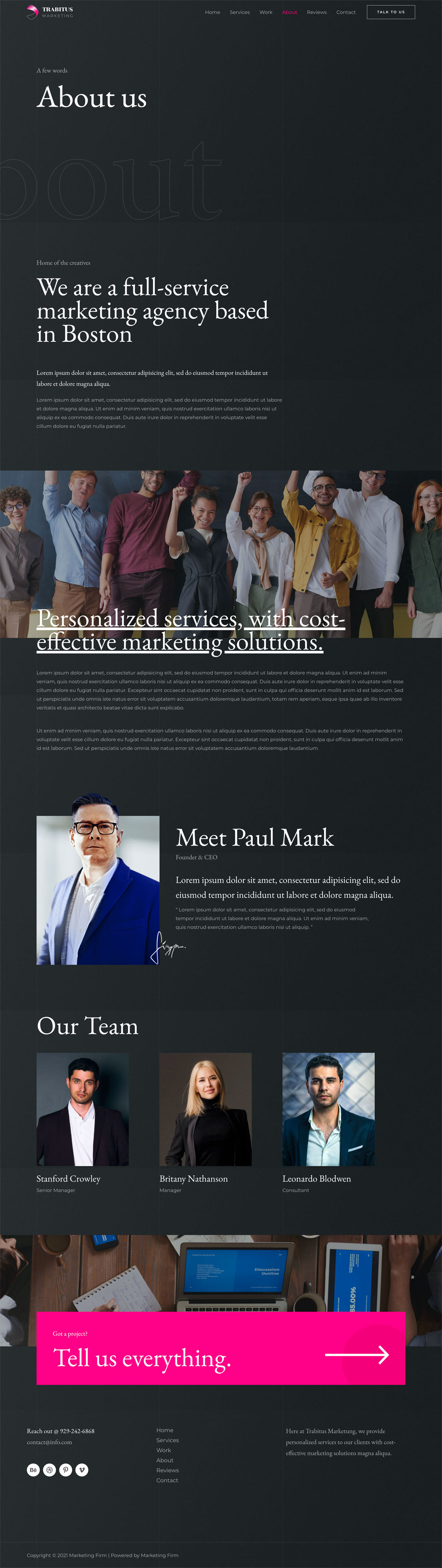 一个令人印象深刻的英雄部分可以让你提前宣传你最好的服务。主页设计精美,可以展示你的服务、客户评论等等。