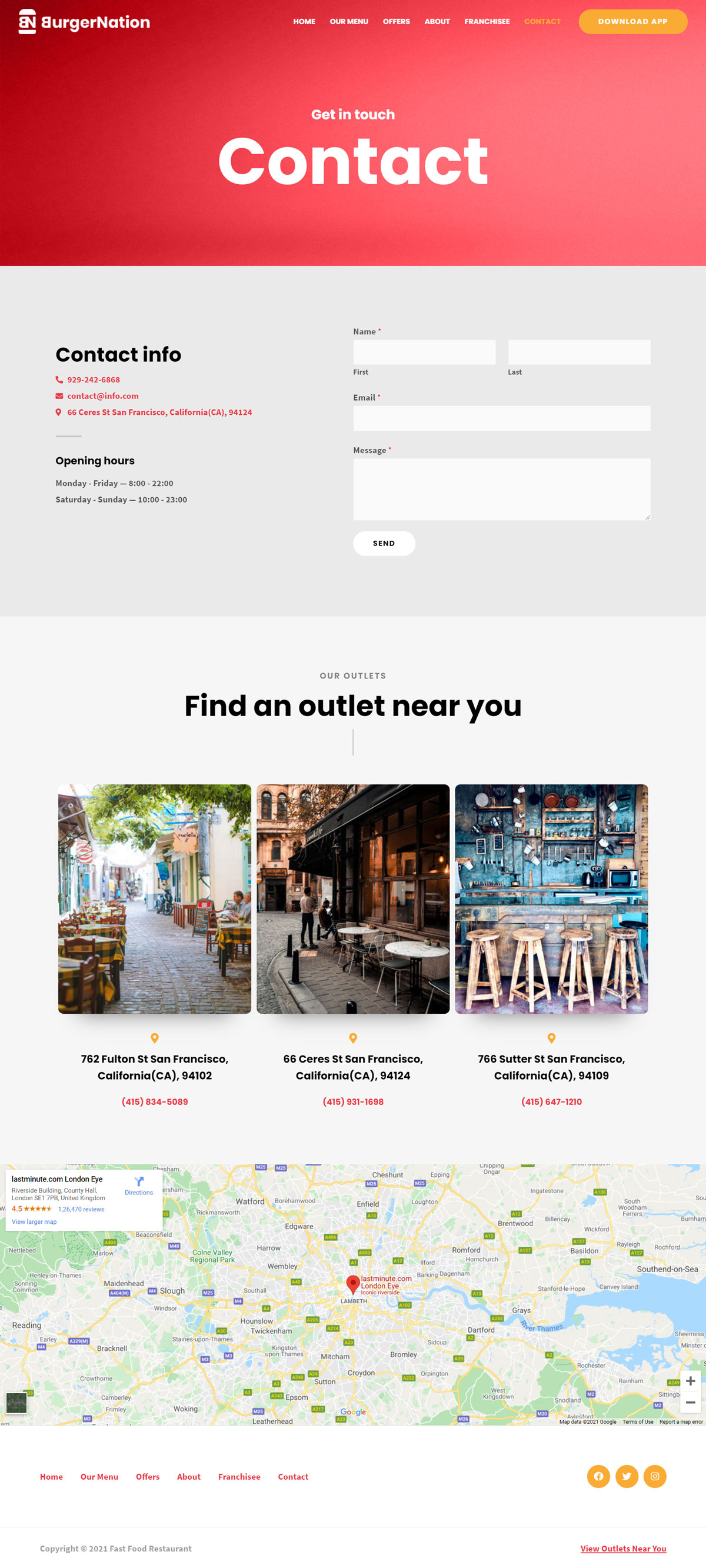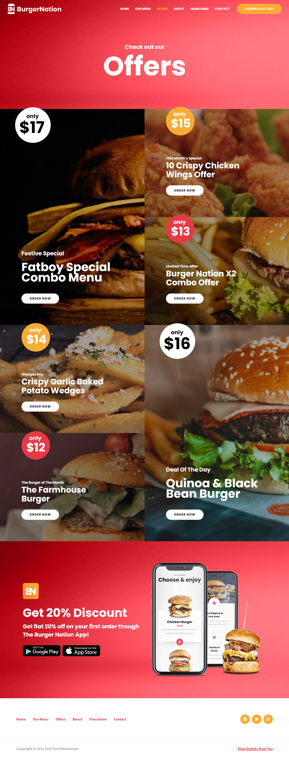 从在线订购系统、菜单、交易和优惠到客户评论、店铺详情等,该模板包括您需要向客户提供的一切,并构建一个优秀的快餐店网站。
