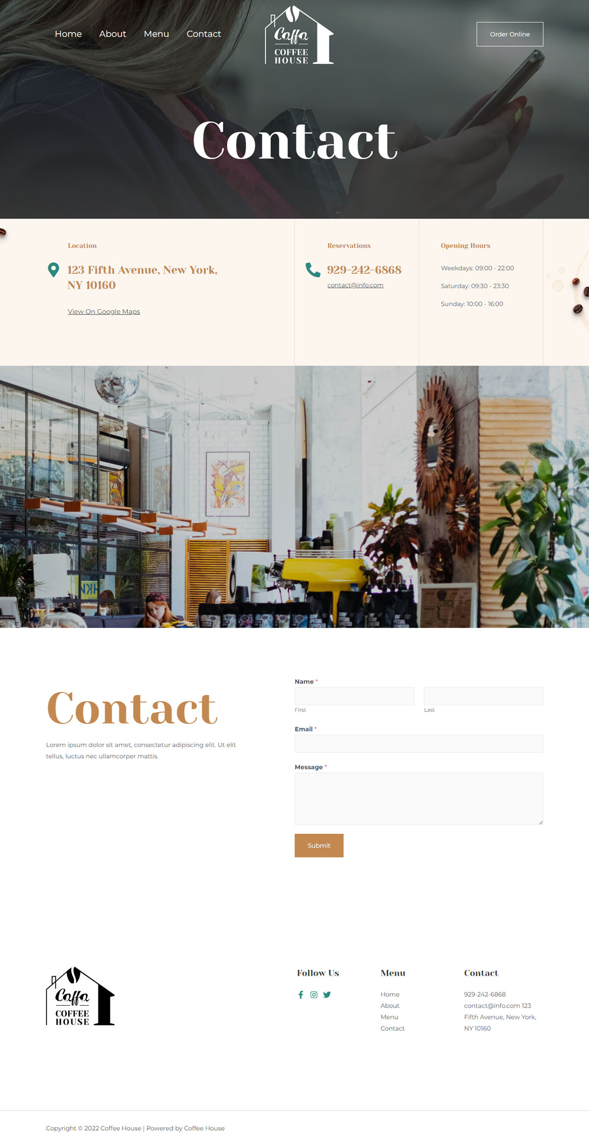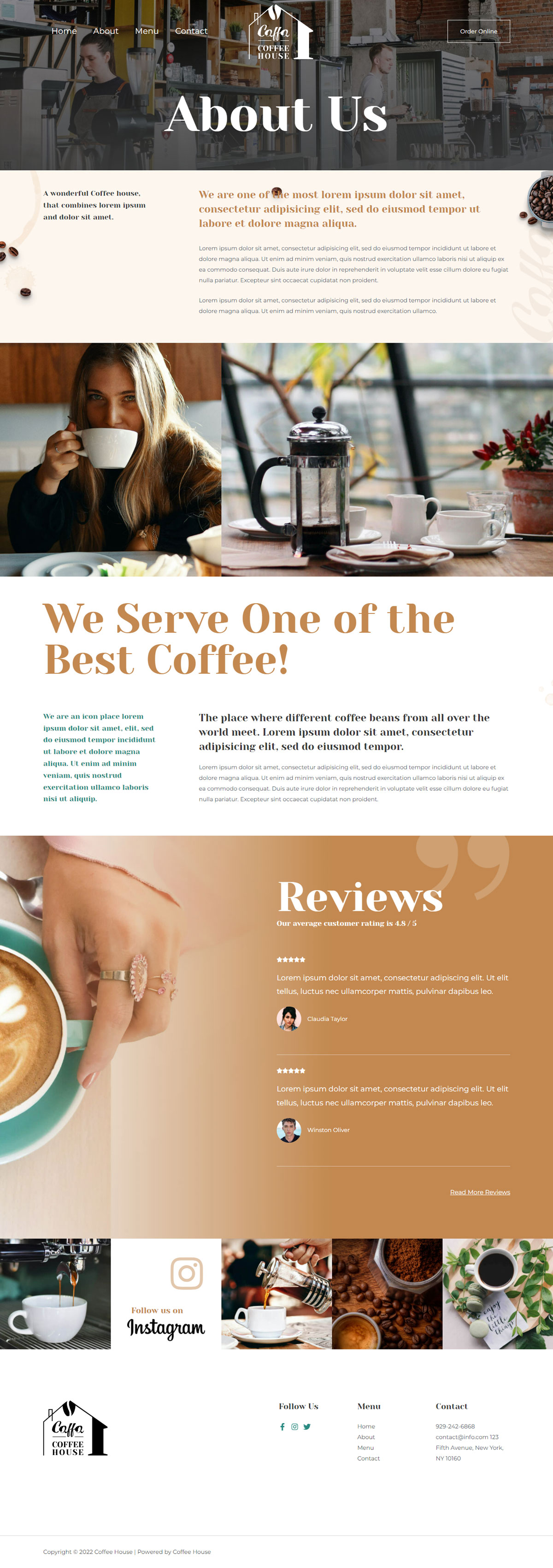 咖啡屋模板使用温暖、传统的外观,非常适合咖啡师和咖啡店。它创造了一个温暖、热情的氛围,邀请你去探索,这正是我们想要从一个咖啡屋网站得到的。