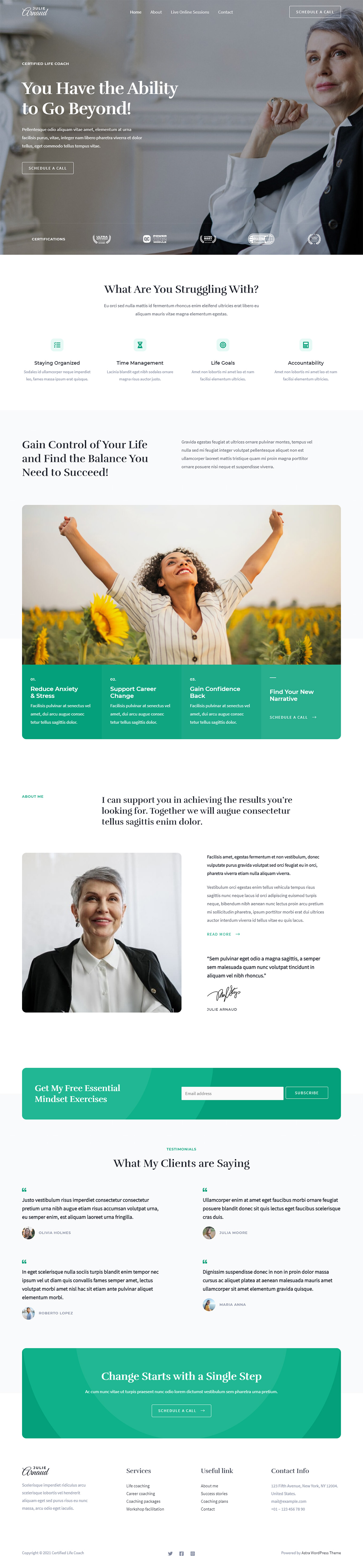 我们的生活蔻驰网站模板已经覆盖了你。专业设计的模板拥有您今天开展教练业务所需的一切。它很轻,很受欢迎,包括一系列可定制的部分,为您提供专业服务。