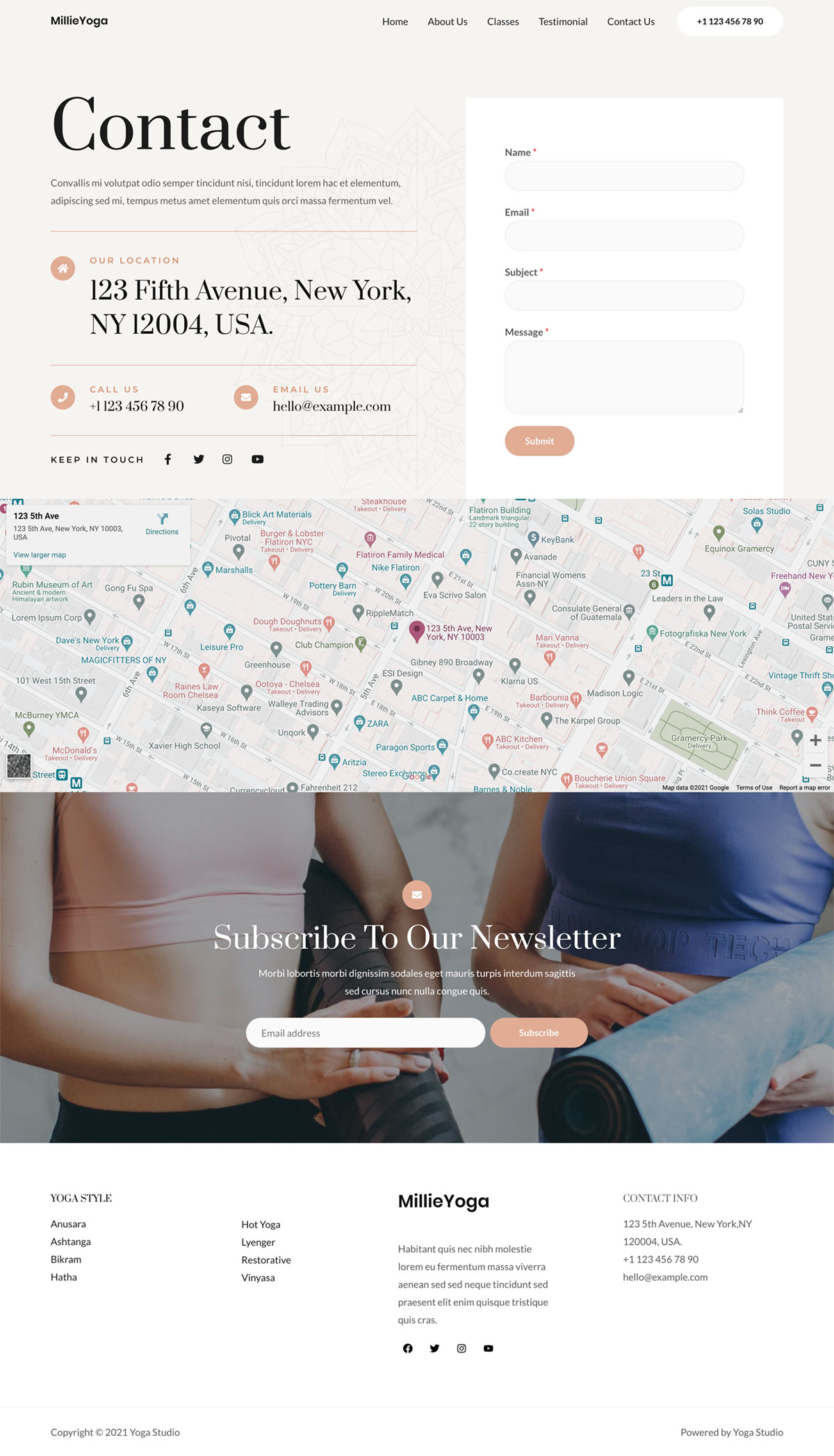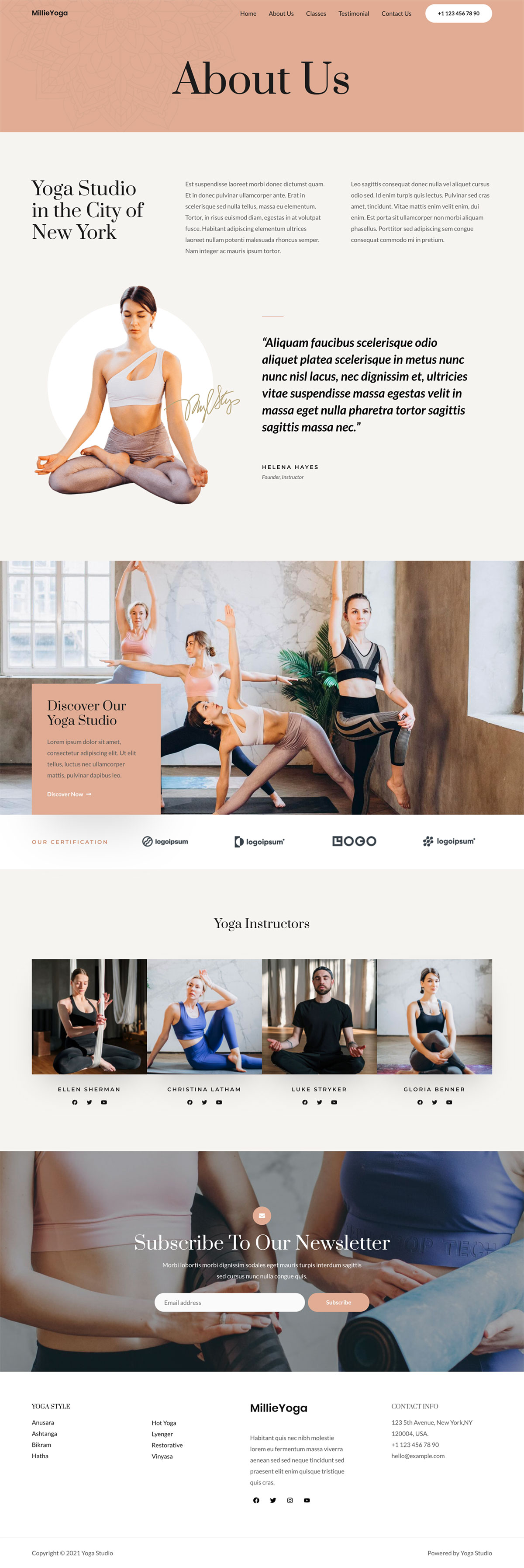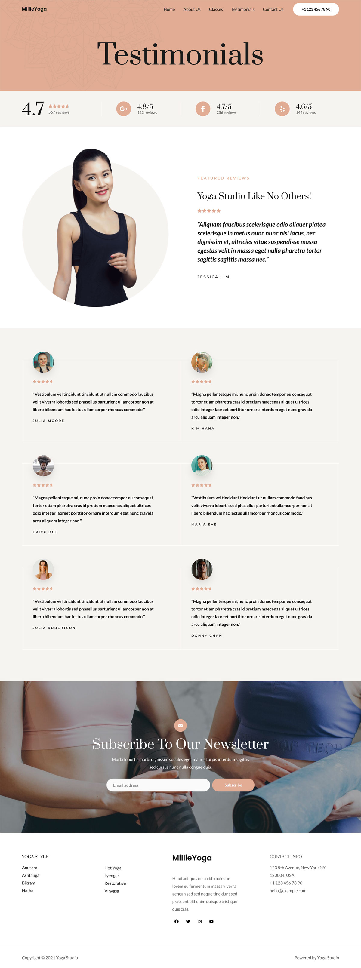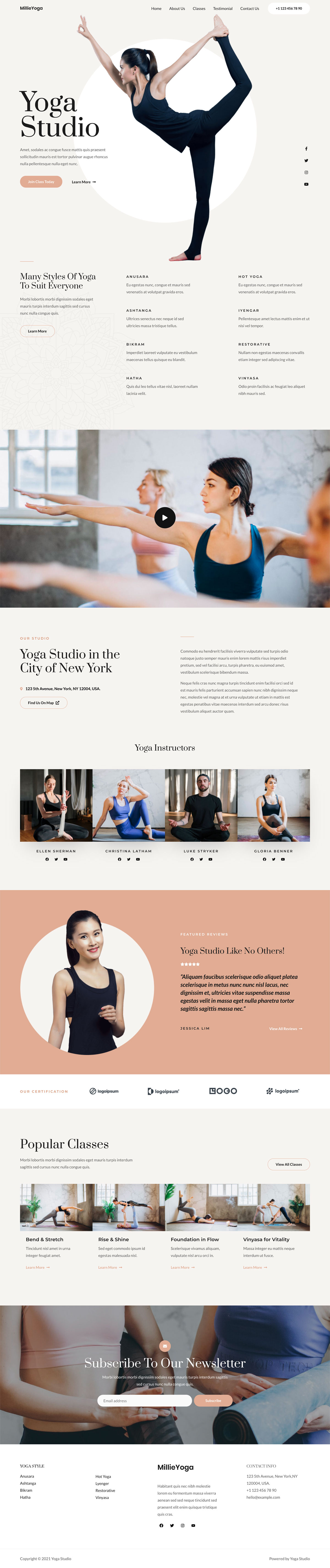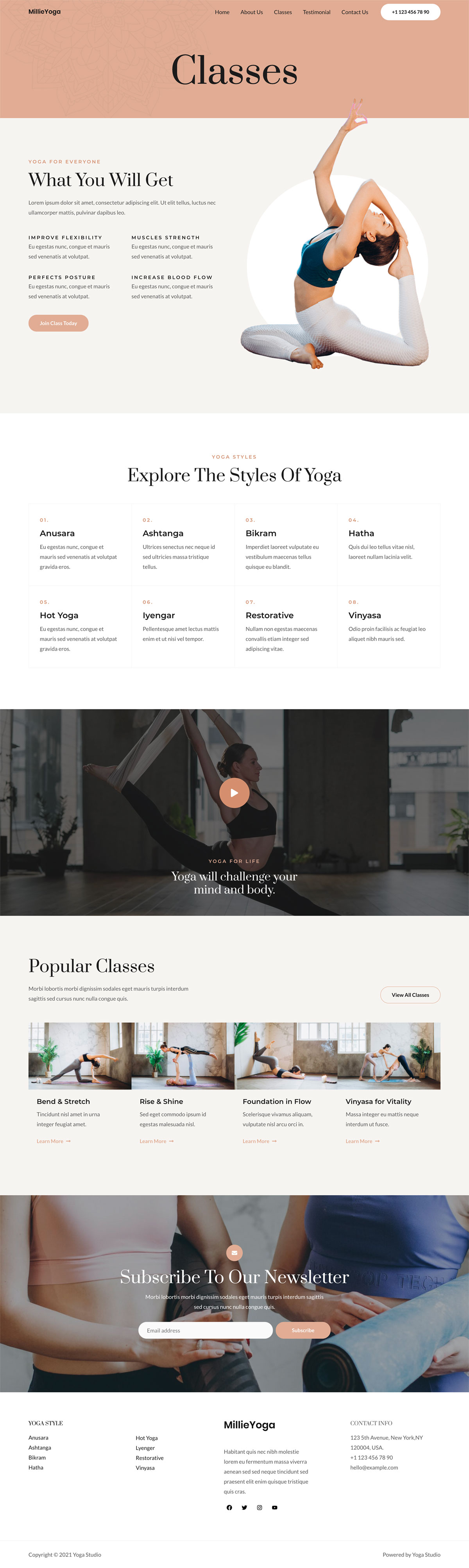 包括各种瑜伽姿势、流行课程、教练详情、顾客评论等等。您还可以通过新闻订阅表格与客户保持联系。