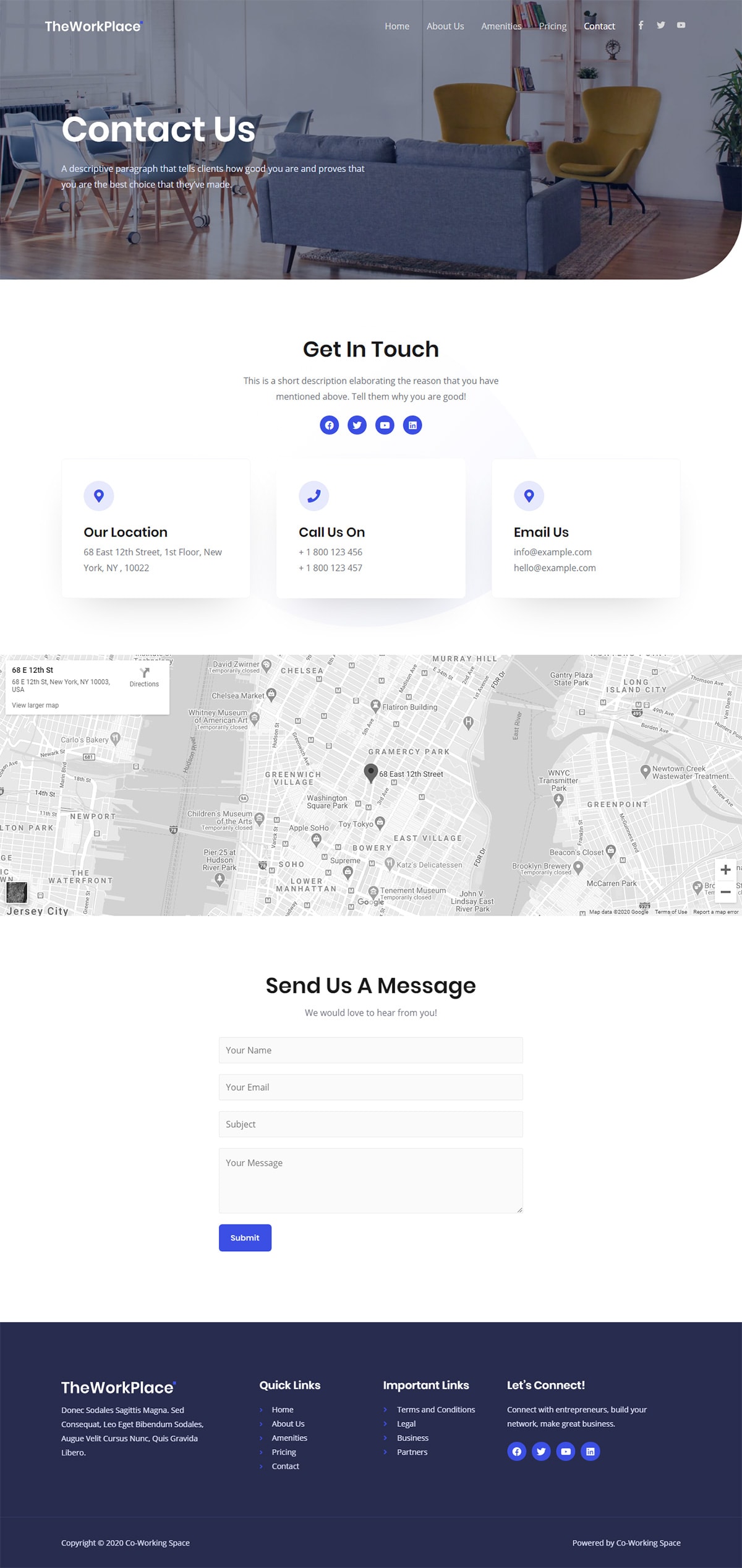 共同工作空间模板的主要功能干净、现代的业务模板,适用于任何利基市场图像和布局的广泛使用包括基本内容区域和页面吸引人的联系页面,其表单设计为可快速自定义完全兼容拖放页面生成器