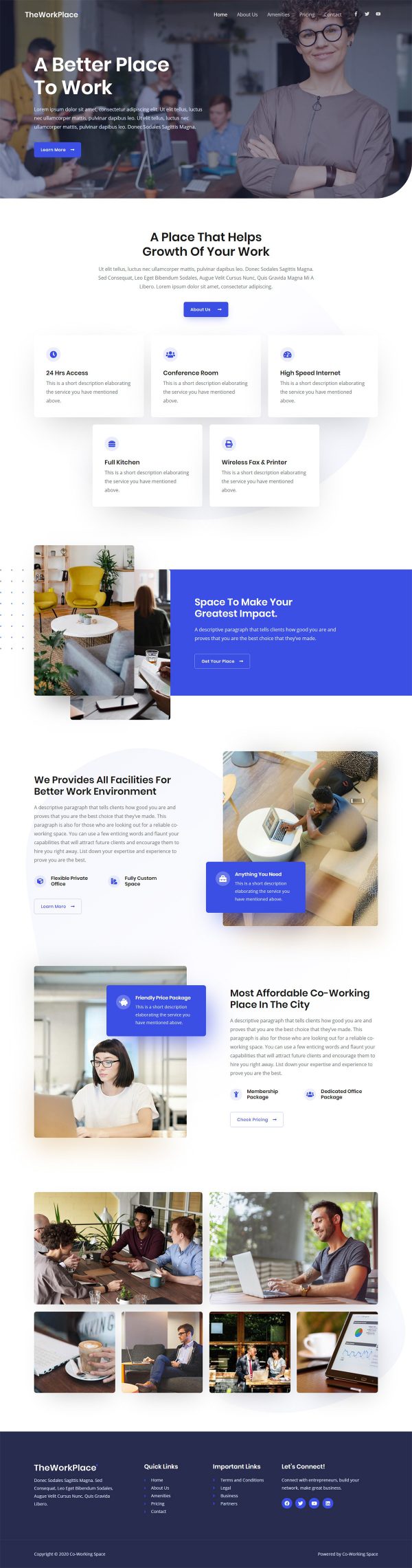 Live preview联合工作空间模板提供了构建引人入胜的商业网站所需的所有要素。虽然配置为共同工作空间,但它可以很容易地个性化,以适应任何组织。