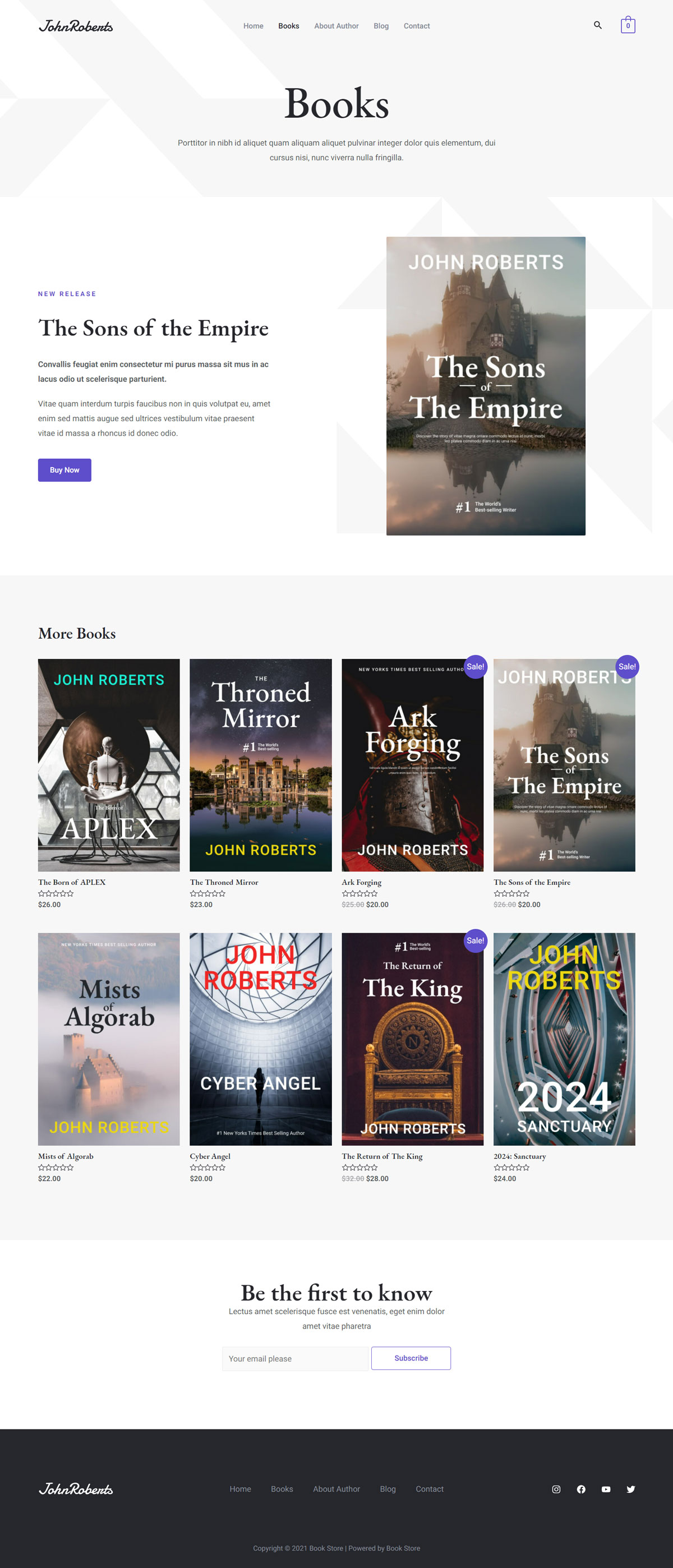书店网站模板是一个专门为小型书店或希望直接向公众销售的作者设计的模板。这是一个轻松的设计,页眉部分用来展示您的最新出版物。