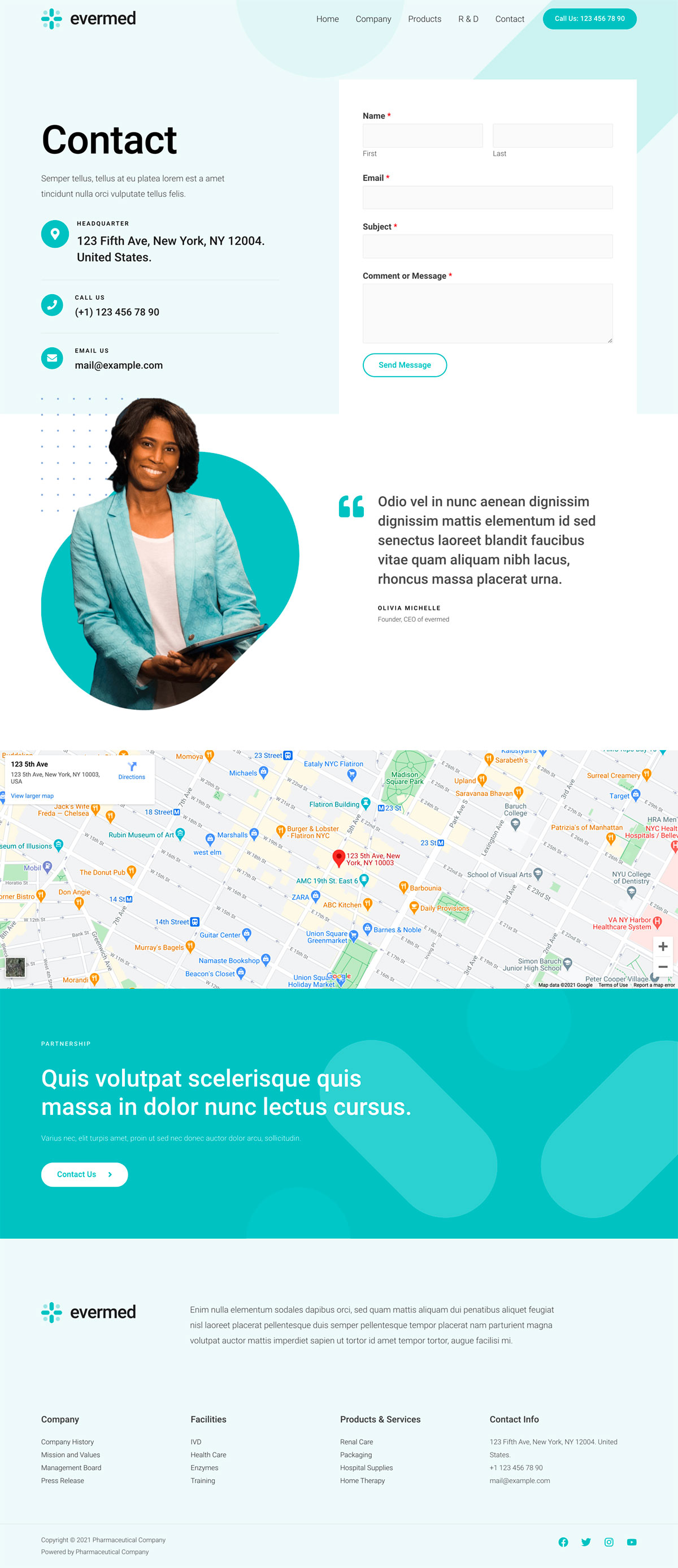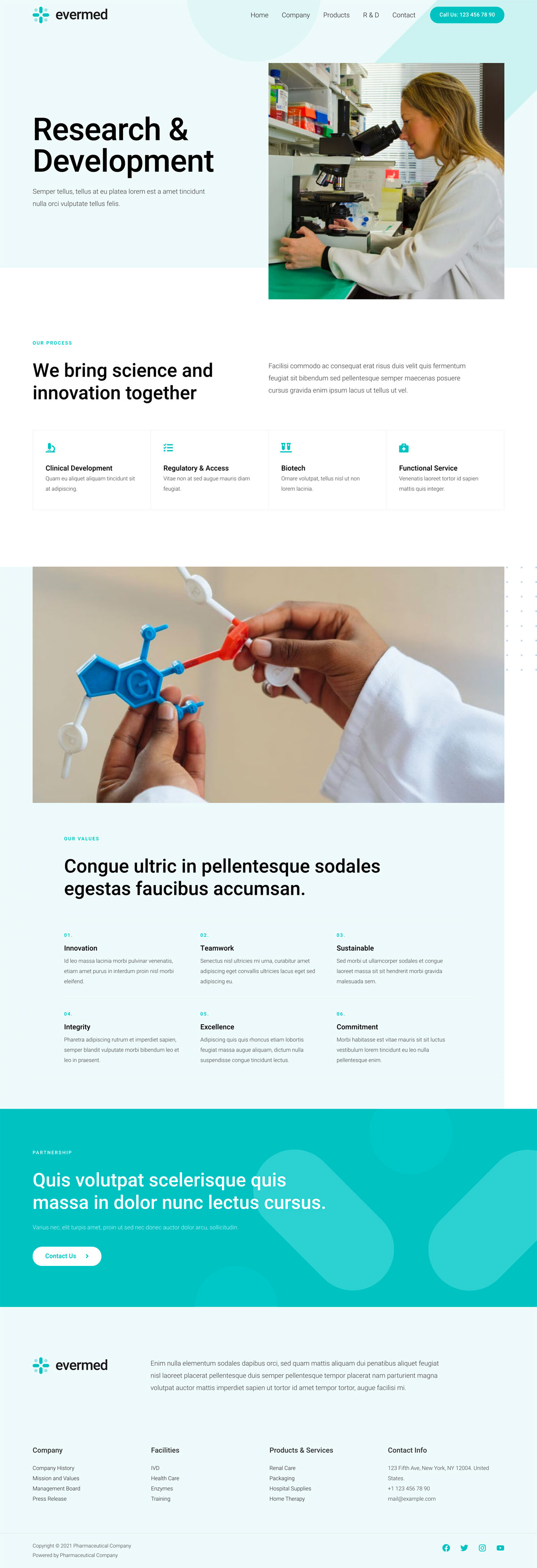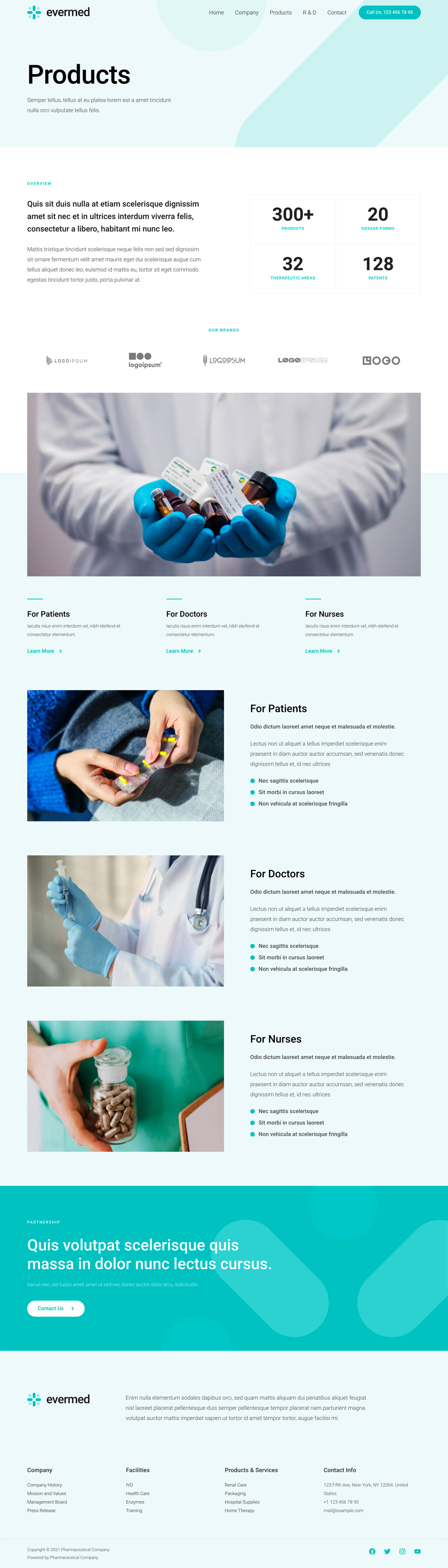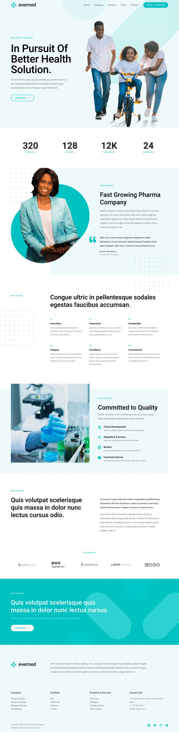 该模板包括主页上的大量空间来概述产品和服务,以及扩展和转换访问者的补充页面。模板的整体观感是积极的,令人放心的,这正是制药公司或医疗行业需要沟通的。