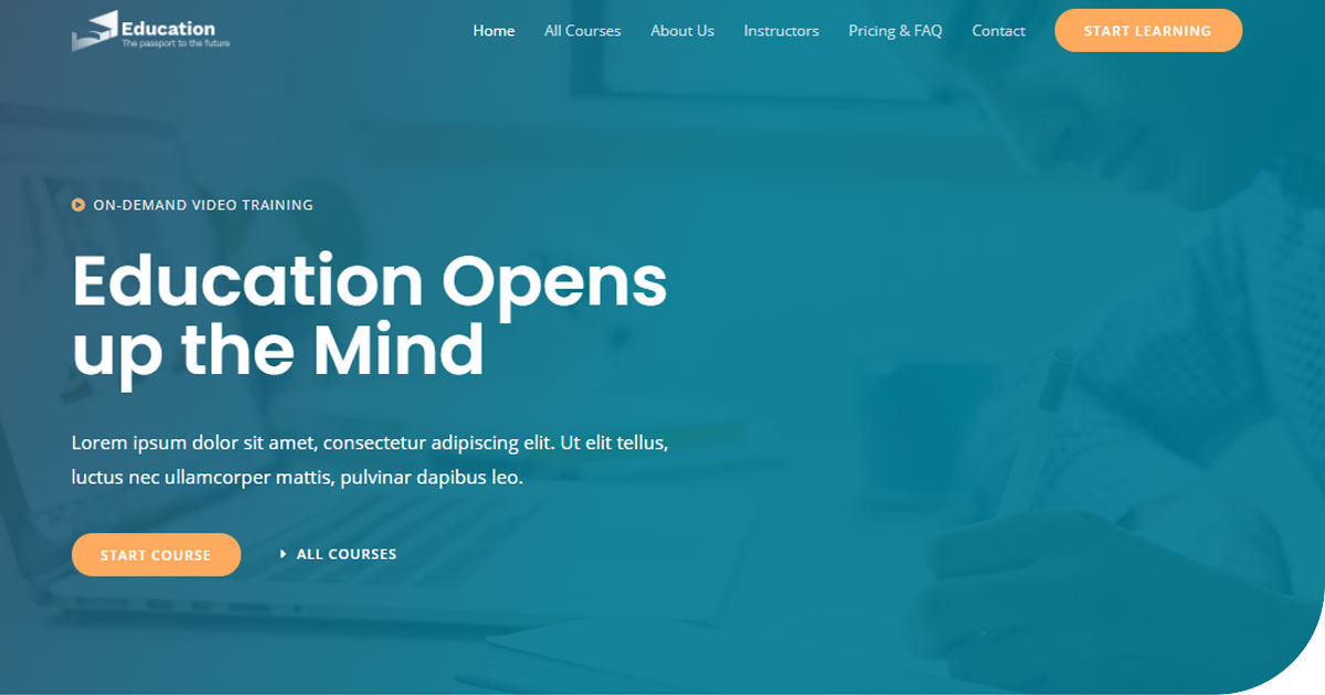 在线课程模板使用令人放心的颜色和大量空白来立即建立权威。这是学校,学院,大学和在线学习的理想选择。专为转换和提供您交付电子学习课程所需的一切而构建。