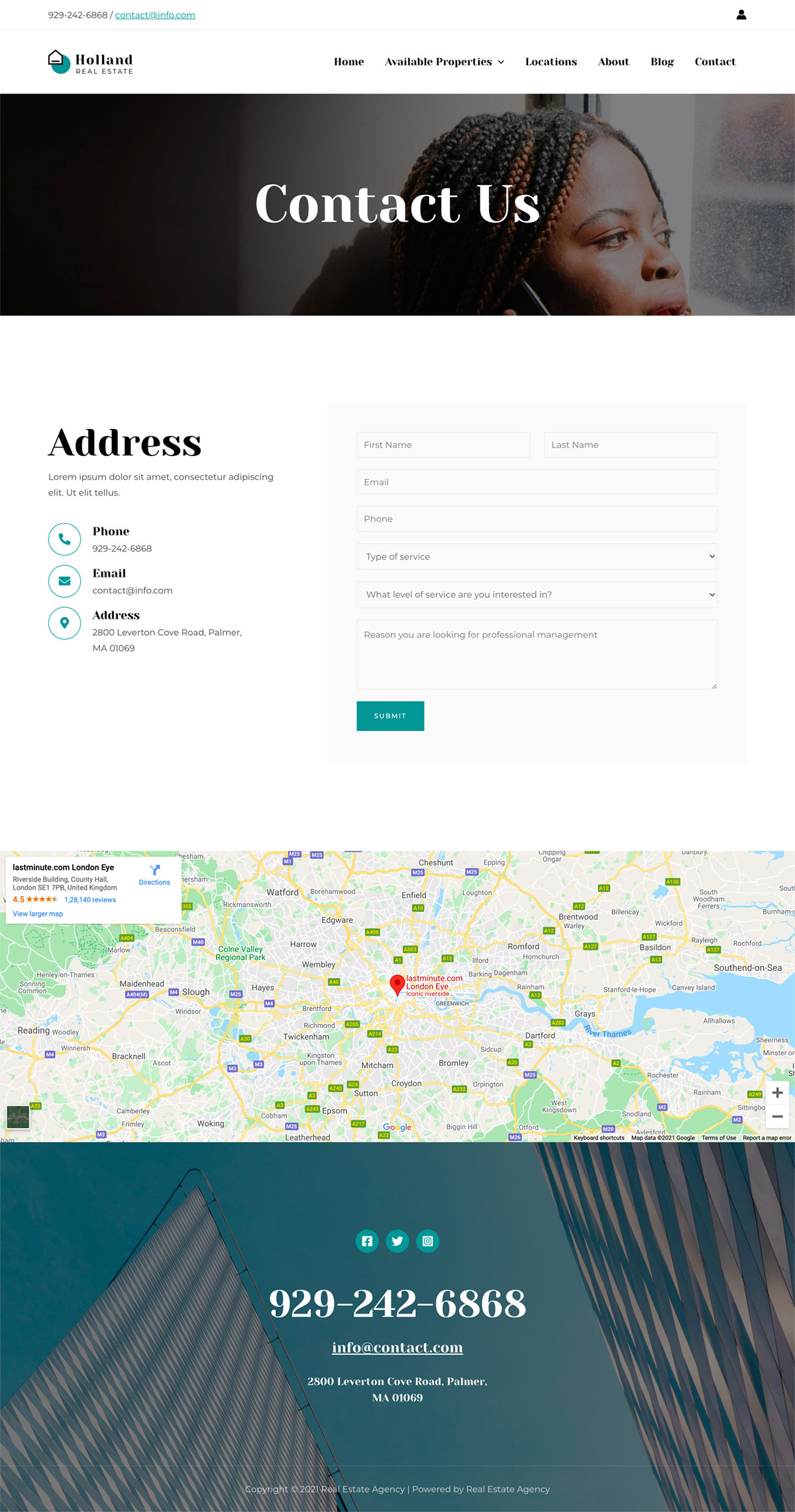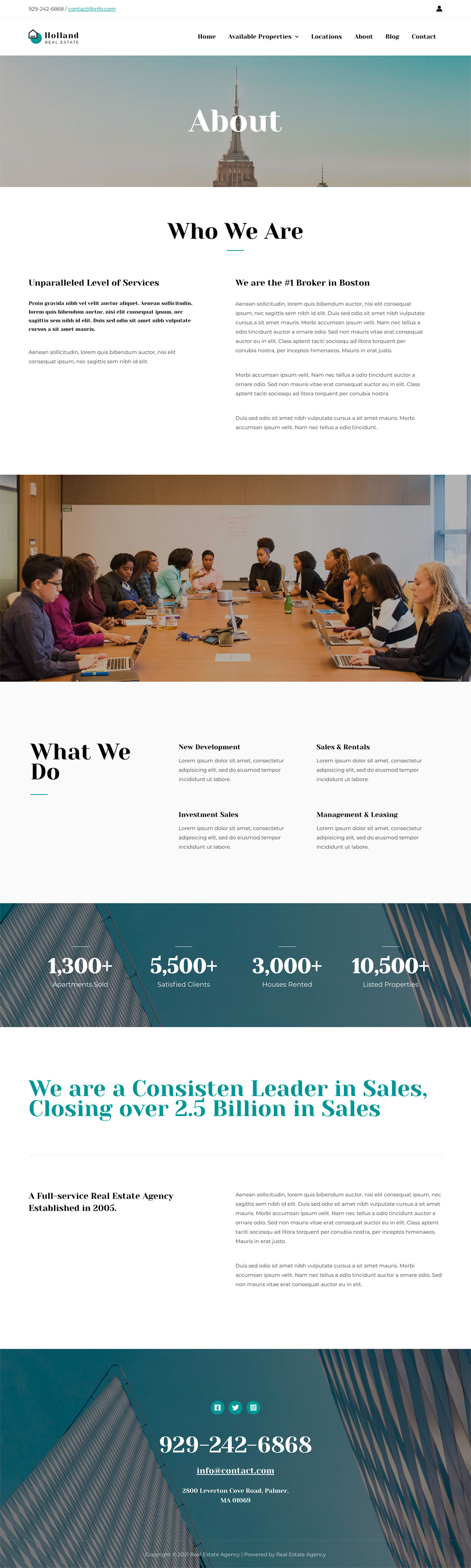 主页包括许多内容区域来概述您的服务和一个特色列表部分来展示属性,它还包括一个联系表格,证明部分和清晰的导航。您看到的一切都可以轻松定制,以满足您的确切需求!