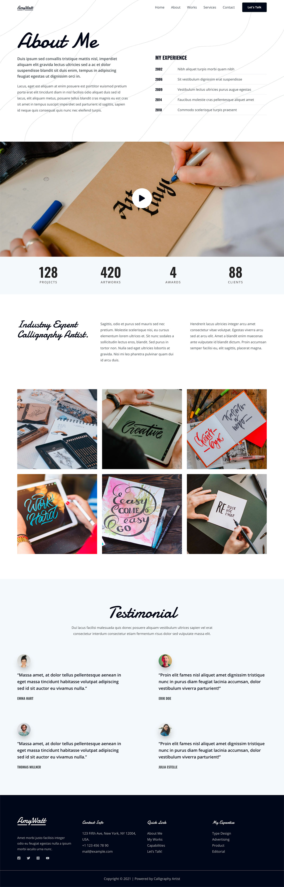 书法艺术家模板是一种描述性设计,采用手写字体和全屏设计。它很大程度上是单色的,通过图像提供的颜色来突出它们。