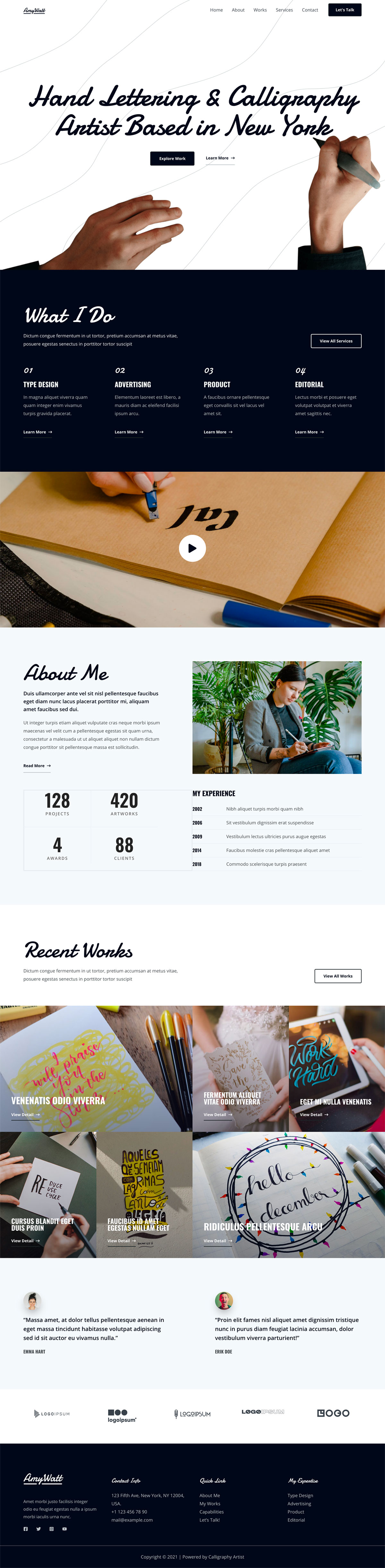 书法艺术家模板的主要功能手写字体的优雅设计单色设计让图像脱颖而出大量留白的漂亮布局作为商业网站或个人作品集与领先的页面生成器完全兼容