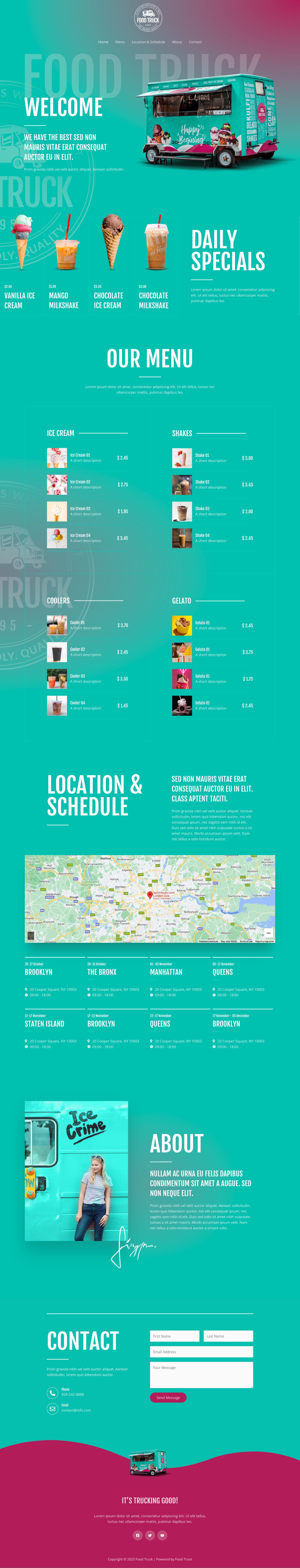 快餐车模板是一个令人敬畏的奇观。这是一个全屏设计,有着可爱的绿色和一个高质量的食品柜图片。凭借吸引人的菜单部分、产品突出显示区域和时间线,它是您需要的一切。