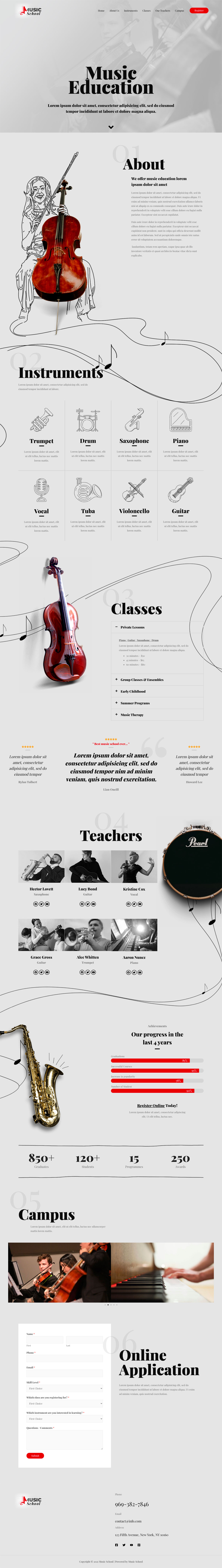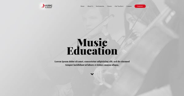 音乐学校模板是一个易于使用的网站模板,可以对其进行定制,以销售乐器、提供音乐课程和展示您的学校校园。把它作为你网站的起点,添加你的内容和音乐老师的照片。