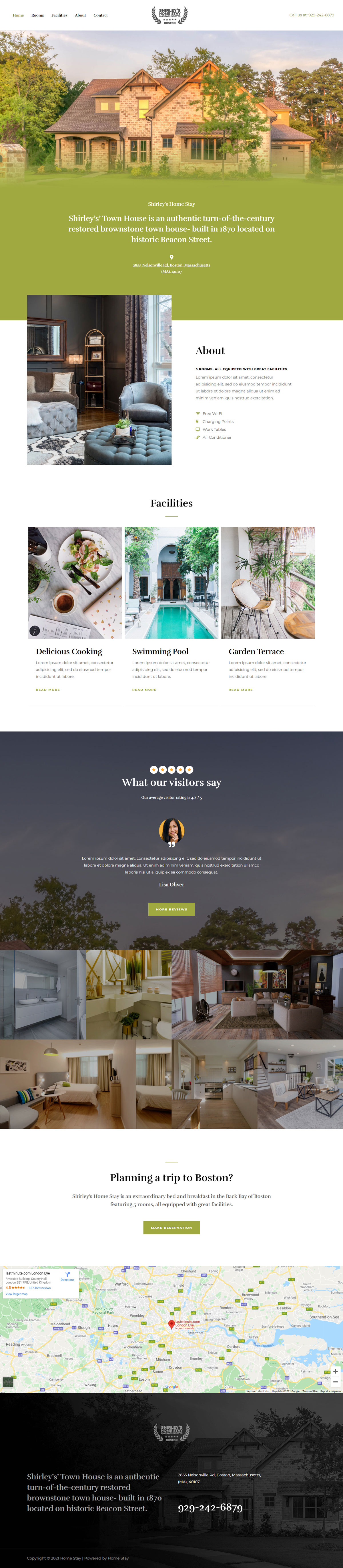 民宿模板的主要特点简洁的设计给人一种质朴和乡村的观感显著的英雄形象非常适合宣传民宿主页特色是便利设施和客户评论集成了谷歌地图以帮助潜在客户找到酒店与领先的页面生成器完全兼容
