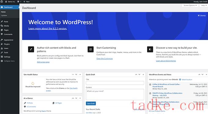 从这里,您将管理您的WordPress网站、更改内容和添加内容。