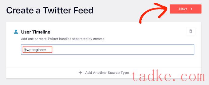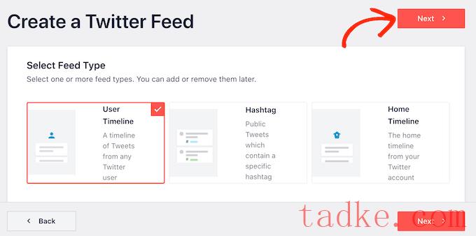 如果你想要更多的转发,只需选择‘用户时间轴’,然后点击‘下一步’。