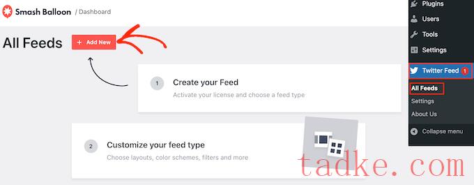 完成此操作后,您就可以创建自定义提要了。要开始,请转到提要»所有提要然后点击“添加新项”按钮。