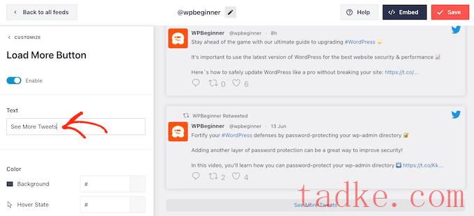 当你对推文的外观感到满意时,你可以返回Smash Balloon设置主屏幕,然后选择“加载更多按钮”。