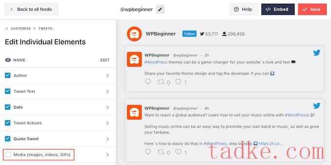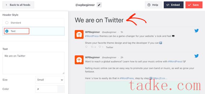 在下图中,我们将需要使用[custom-twitter-feeds feed=2]