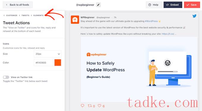 只需注意,Smash Balloon会将这些更改应用于所有推文操作,而不仅仅是“转发”图标。