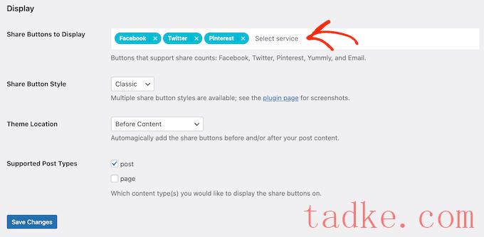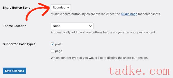 如果您对共享按钮的设置感到满意,请单击“保存更改”。